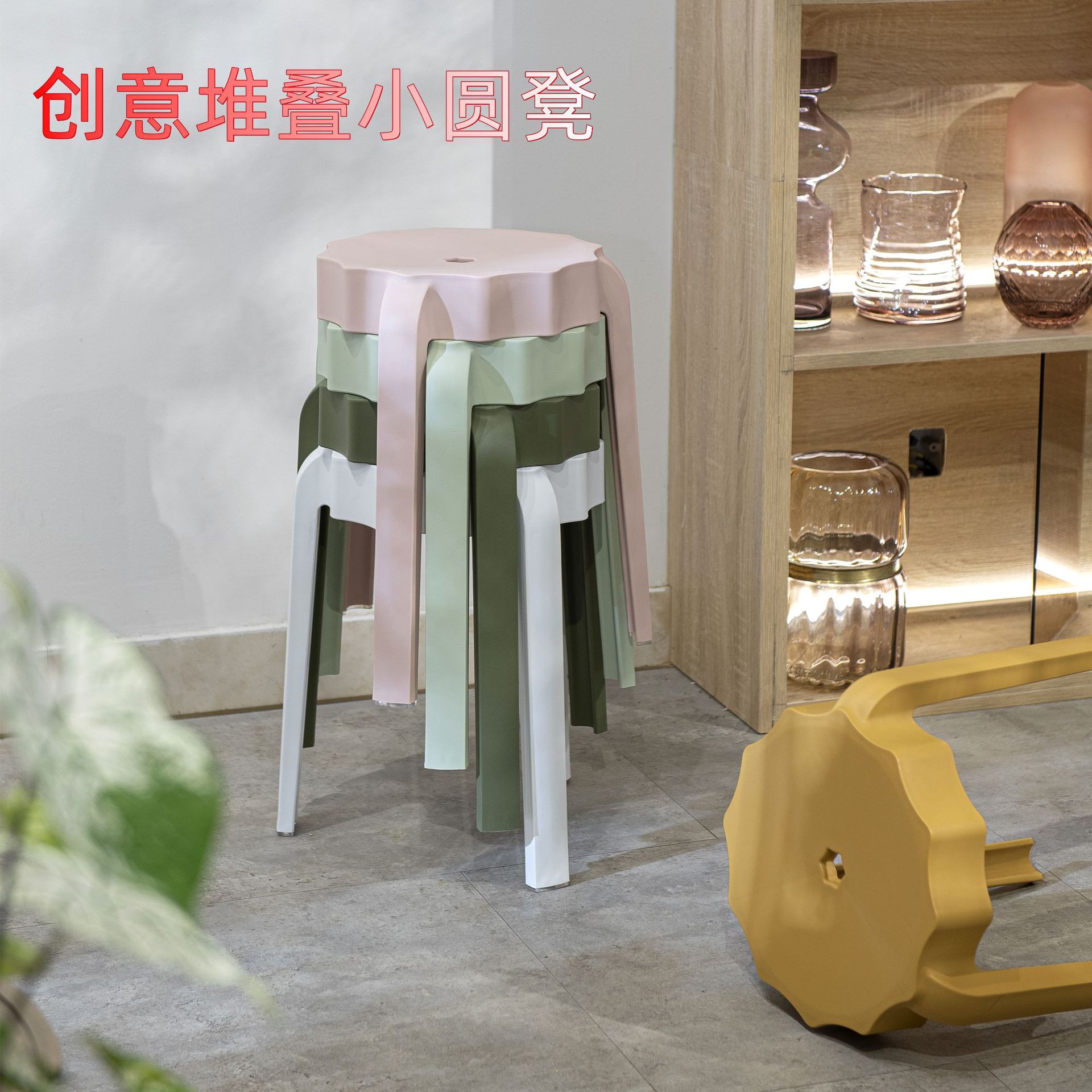 작은 아파트 스타일 의자 현대 간단한 가정용 pp 풍차 의자 메이크업 의자 하이 스툴 스태킹 사이클론 스툴 하이 라운드 스툴스토어 가기