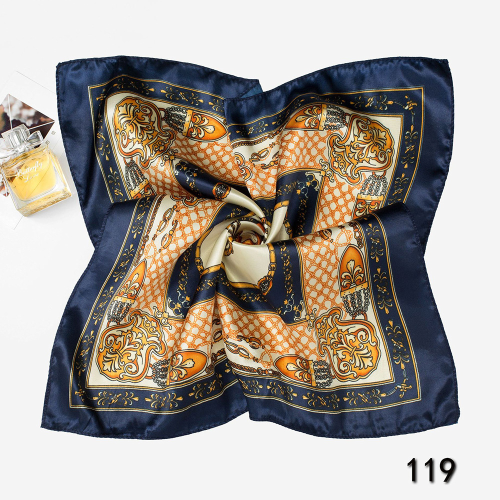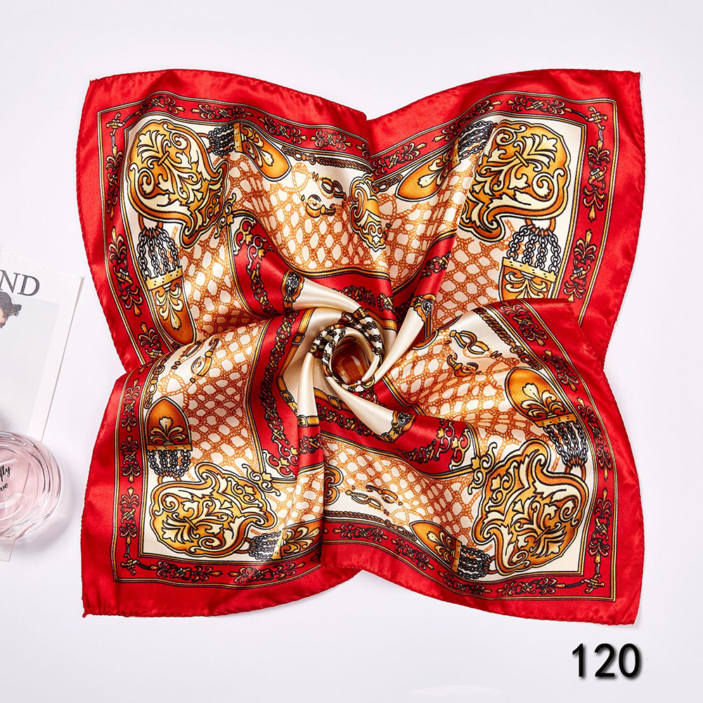 다양한 매직 프린트 실크 스카프 선물 작은 스퀘어 스카프 스튜어디스 유니콤 호텔 전문 스타일 작은 스퀘어 스카프 여성 50*50