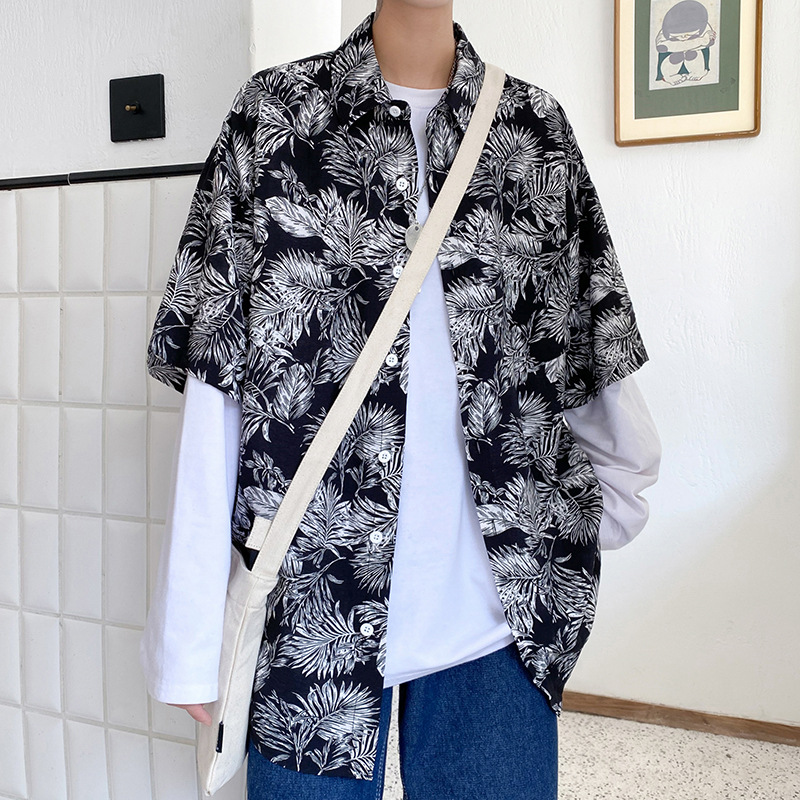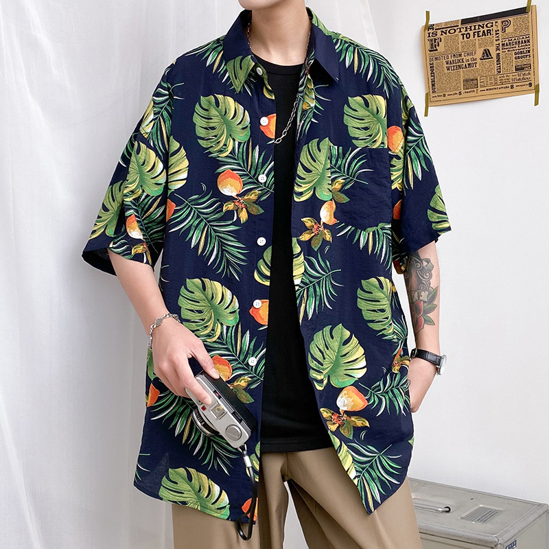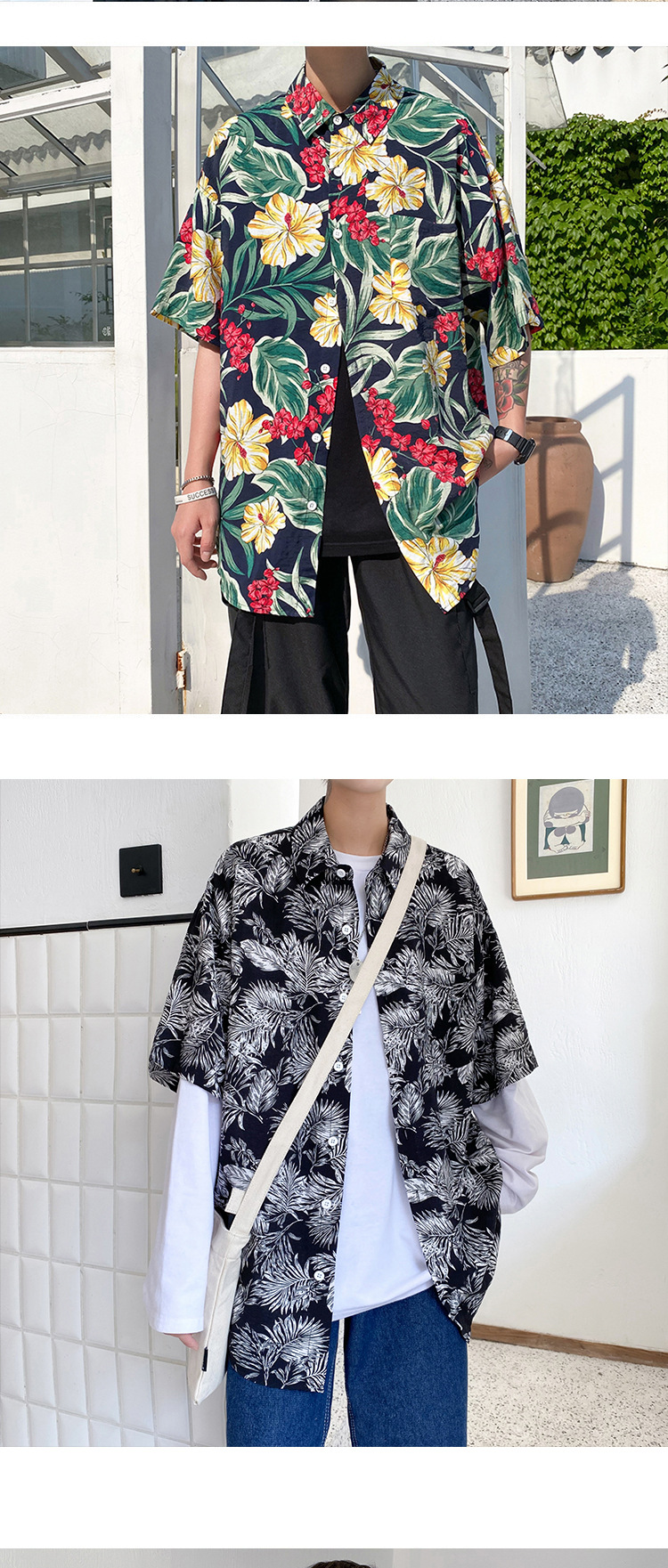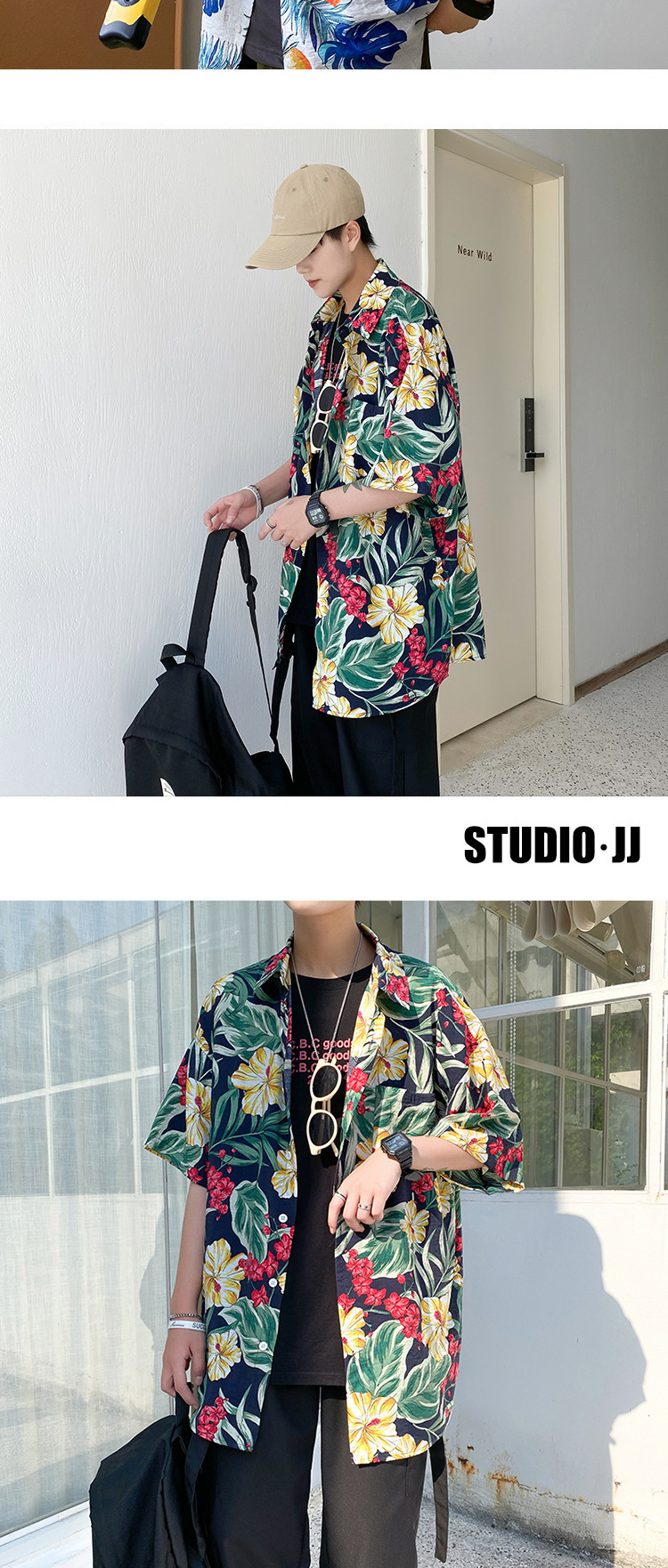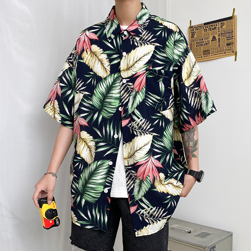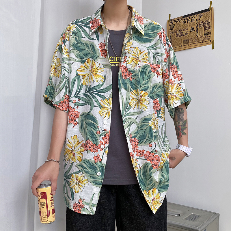 2023 여름 남성 캐주얼 플러스 사이즈 느슨한 반팔 셔츠 한국 패션 청소년 꽃 멀티 컬러 반팔 셔츠