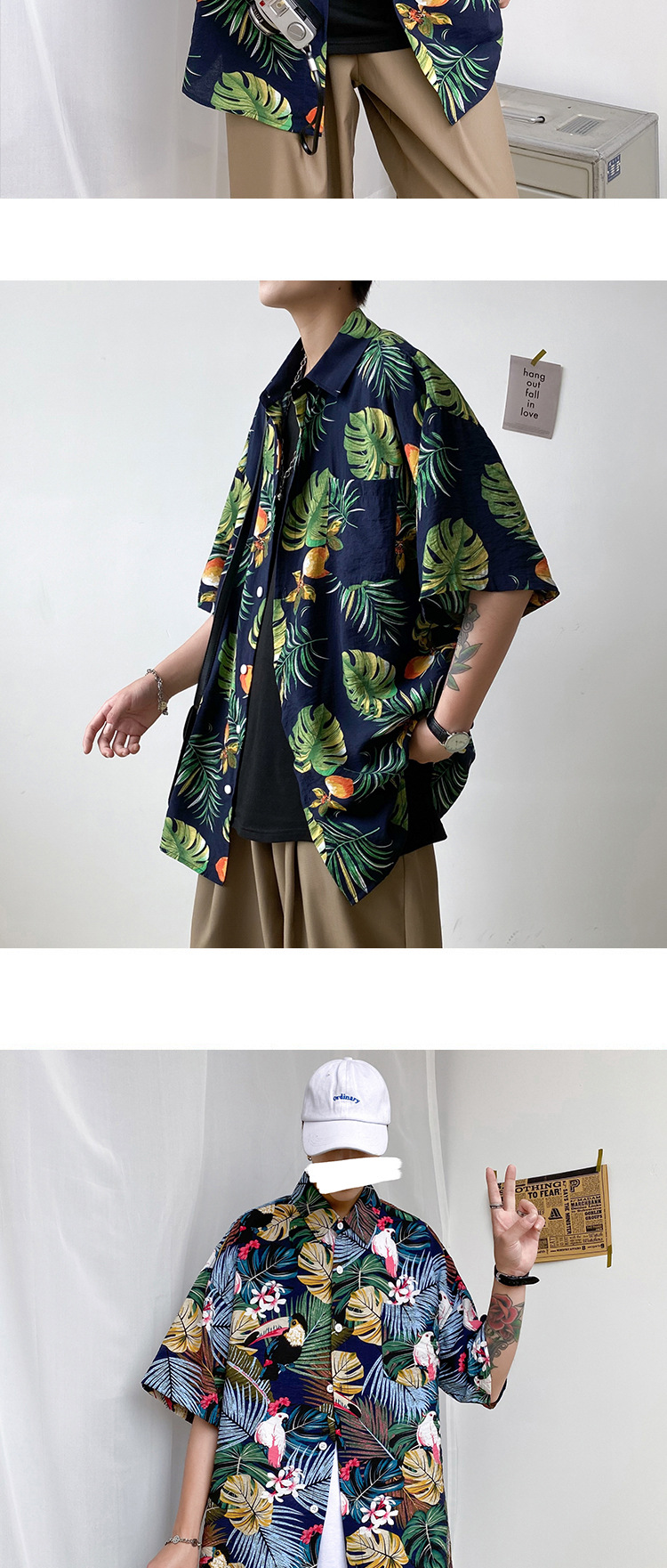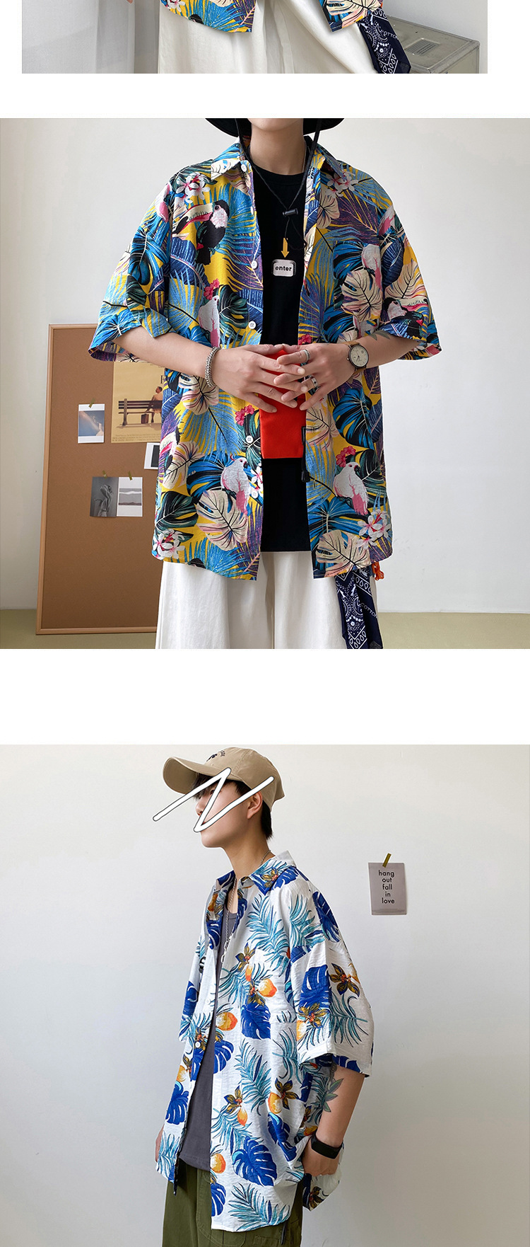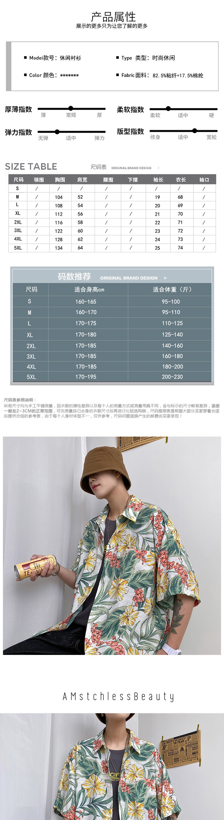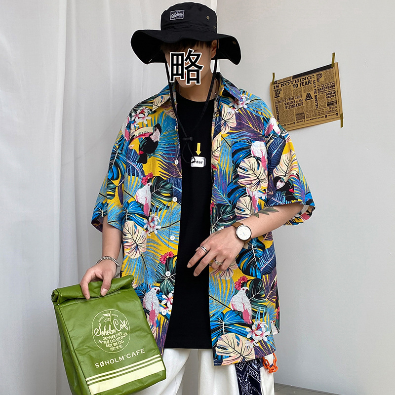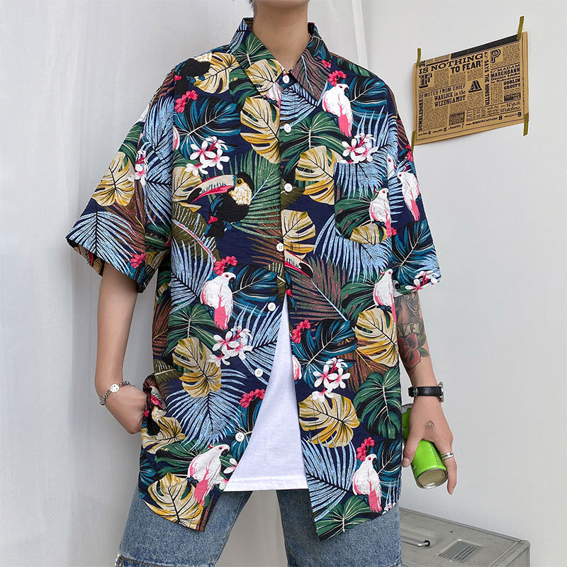 2023 여름 남성 캐주얼 플러스 사이즈 느슨한 반팔 셔츠 한국 패션 청소년 꽃 멀티 컬러 반팔 셔츠