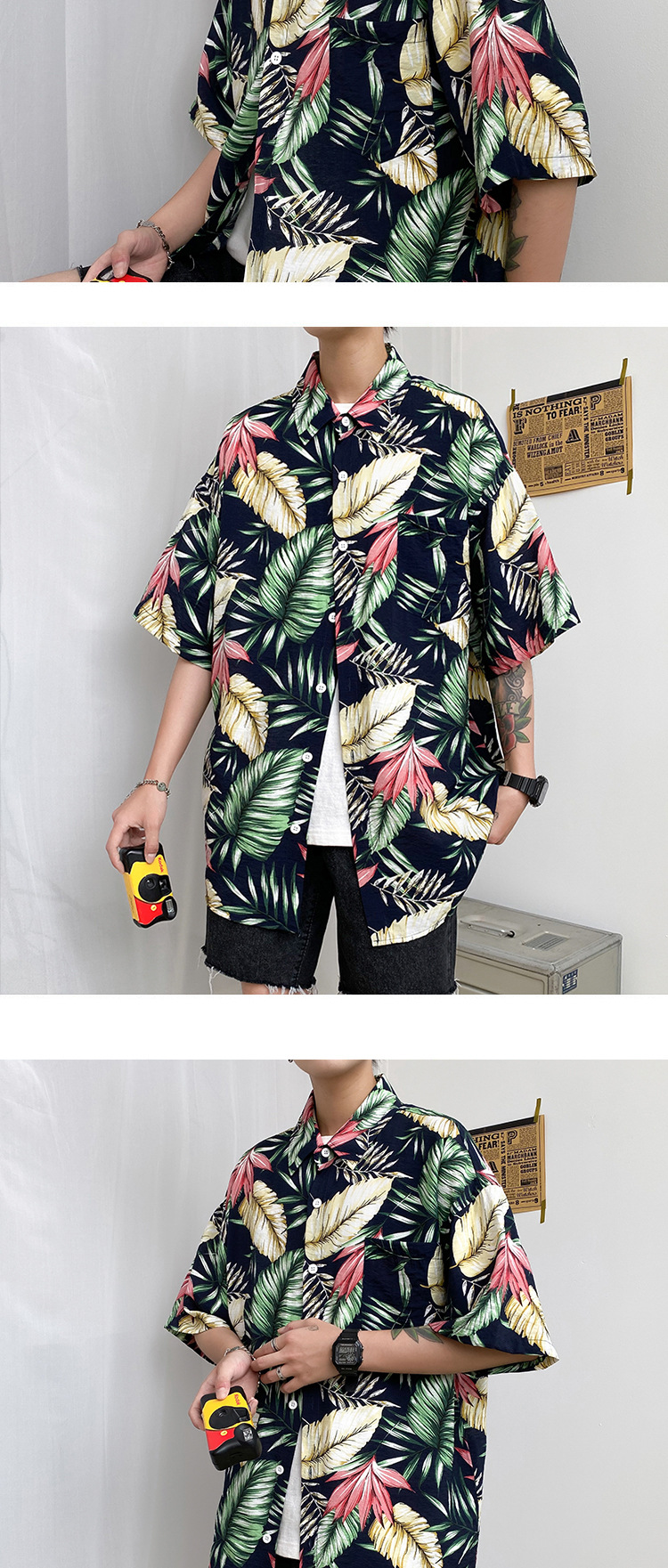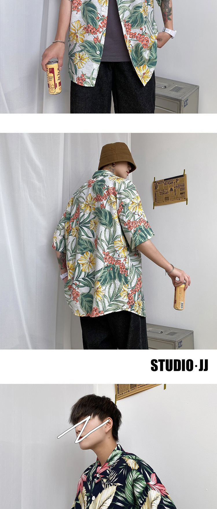2023 여름 남성 캐주얼 플러스 사이즈 느슨한 반팔 셔츠 한국 패션 청소년 꽃 멀티 컬러 반팔 셔츠스토어 가기