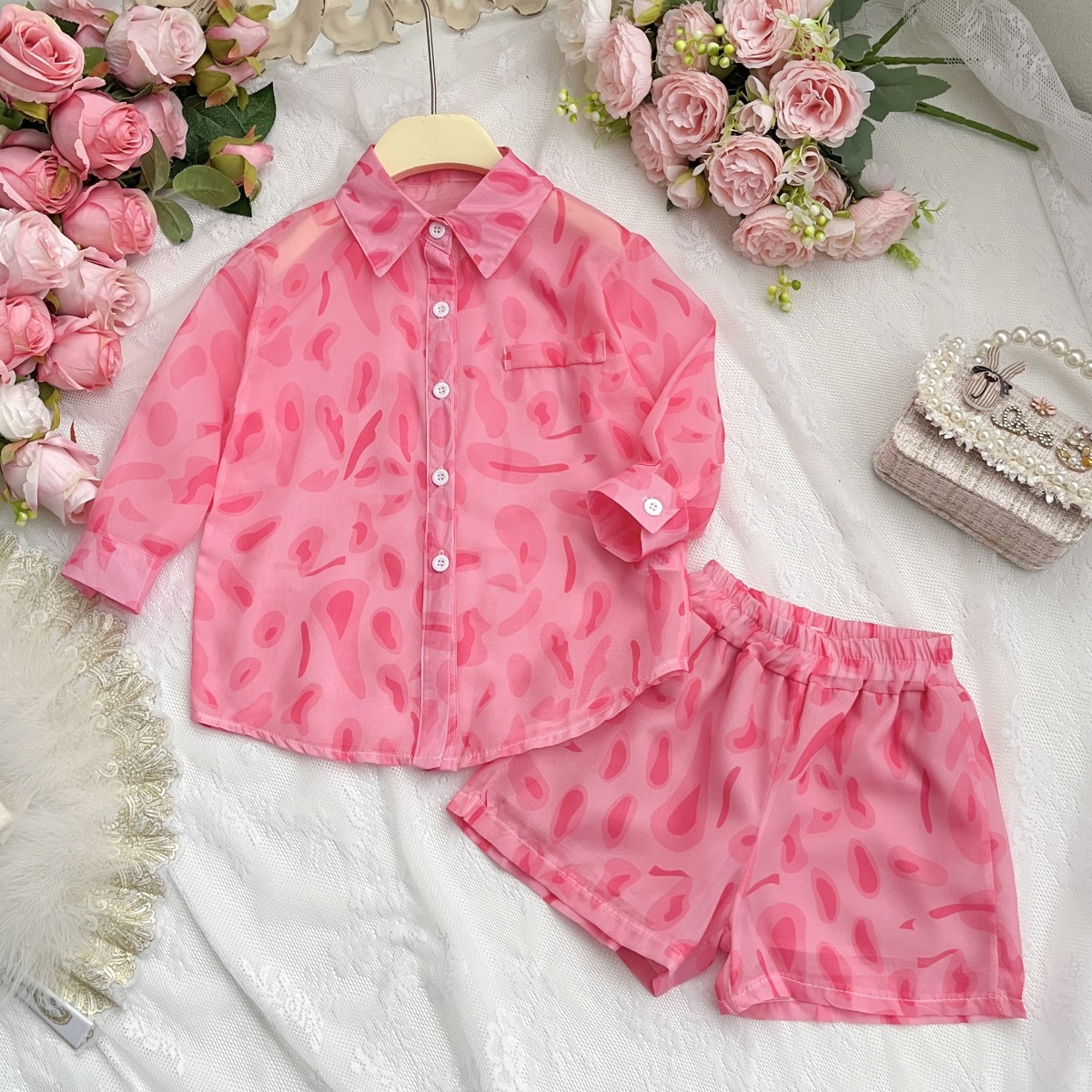 77162 소녀 여름 세트 어린이 자외선 차단제 코트 반바지 투피스 세트 중소 어린이 소녀 얇은 아동 의류
