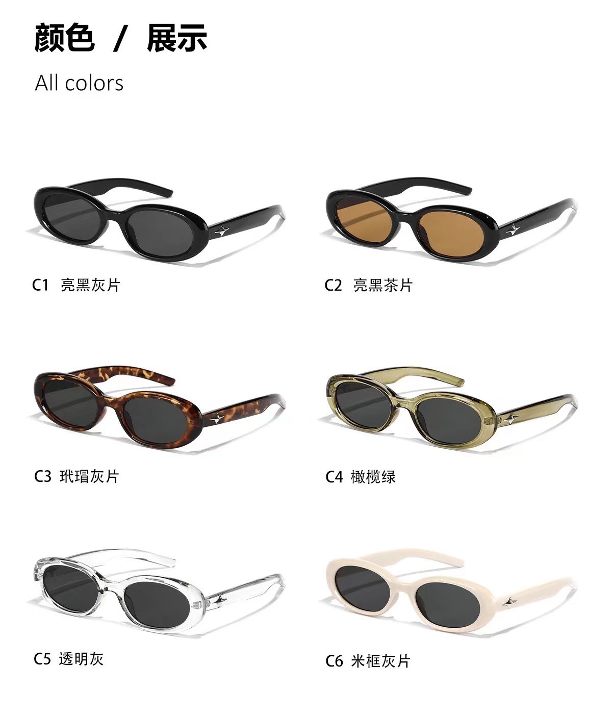 레트로 타원형 선글라스 여성용 고급 in2023 새로운 흰색 선글라스 여름 자외선 차단-
