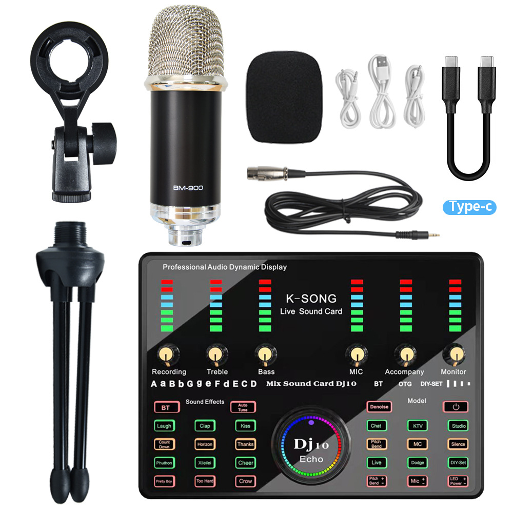 • BM900 블랙 실버 + 영어 Dj10 사운드 카드 + 삼각대 돋보기 브래킷 + Type-c 라인 + 스폰지 볼 세트