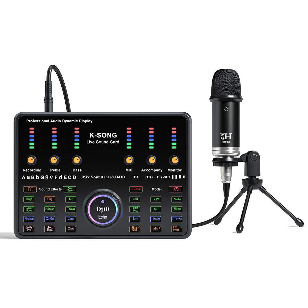 • WXH-BM900 블랙 + 영어 Dj10 사운드 카드 + 삼각대 돋보기 브래킷 + Type-C 라인 + 스폰지 볼 세트