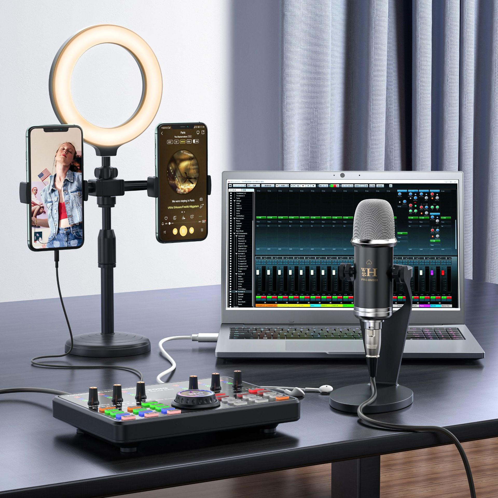 새로운 DJ 사운드 카드, 라이브 방송용 마이크 세트, 도매 믹서, 컴퓨터 녹음, 라이브 방송, 게임용 전문 오디오 사운드 카드