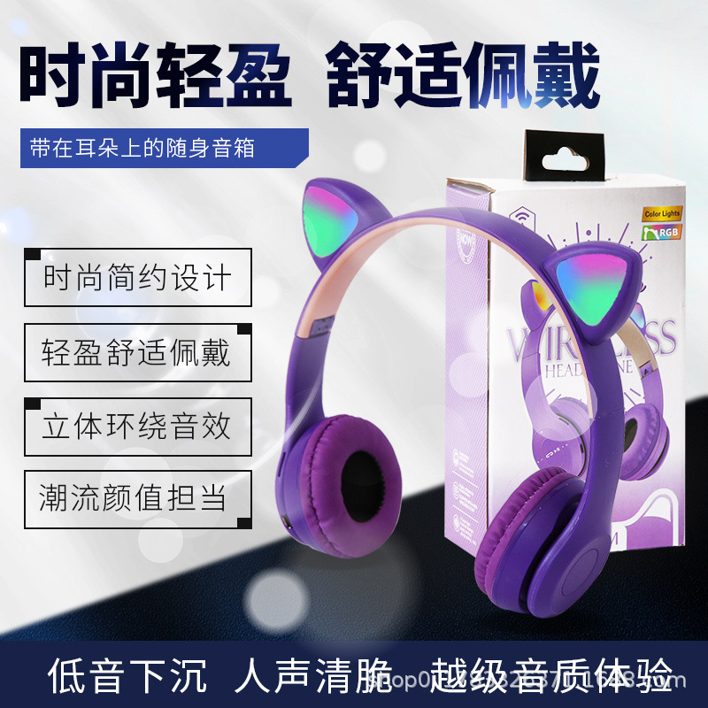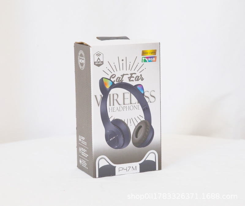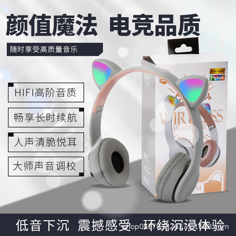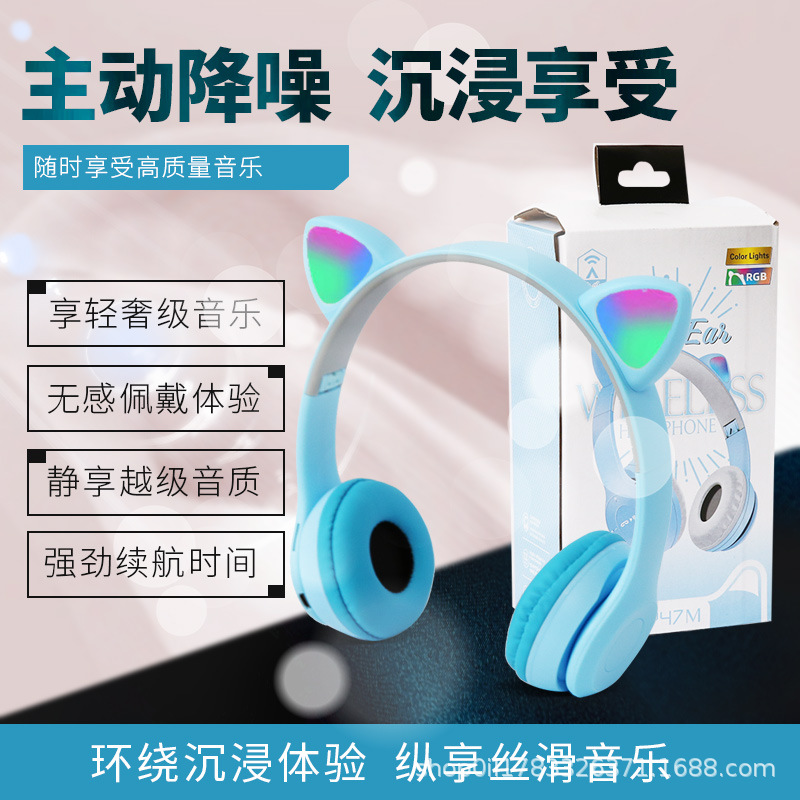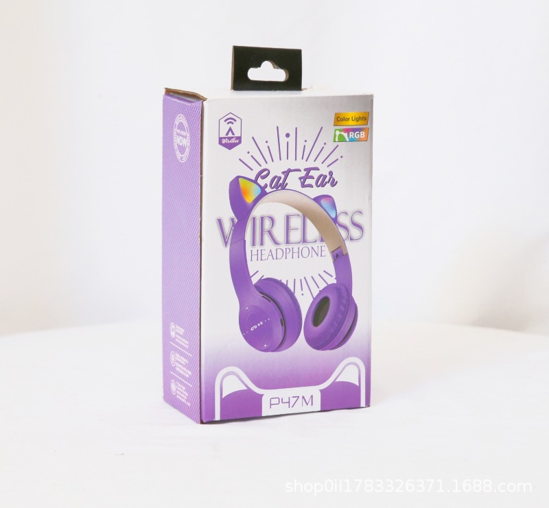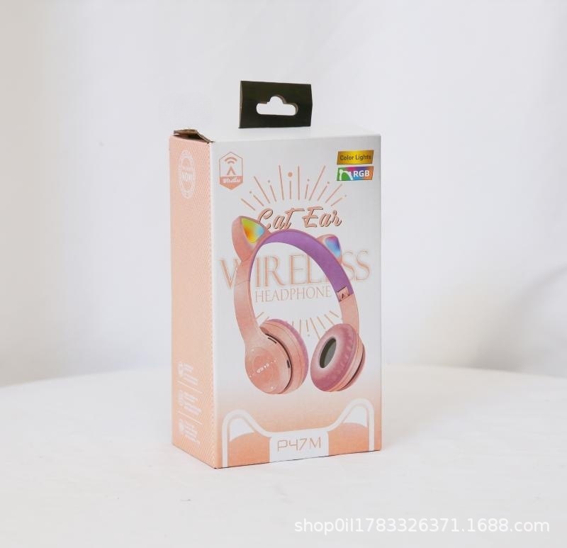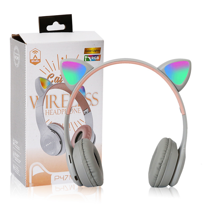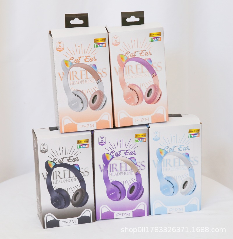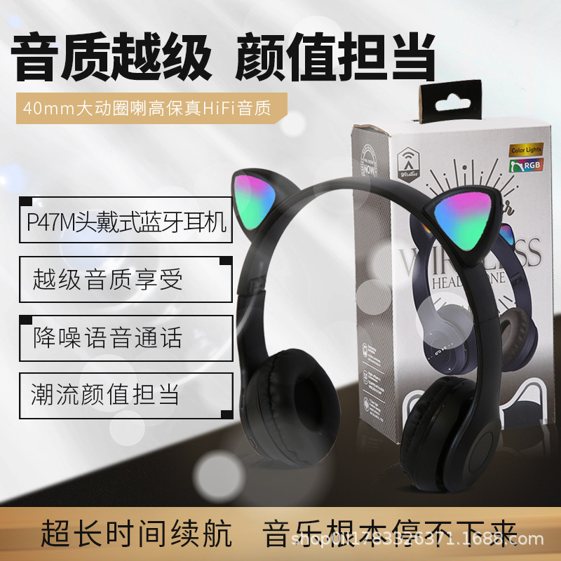 P47M 도매 국경 간 고양이 귀 발광 헤드셋 블루투스 헤드셋 휴대 전화 무선 게임 헤드셋 모델 머신스토어 가기