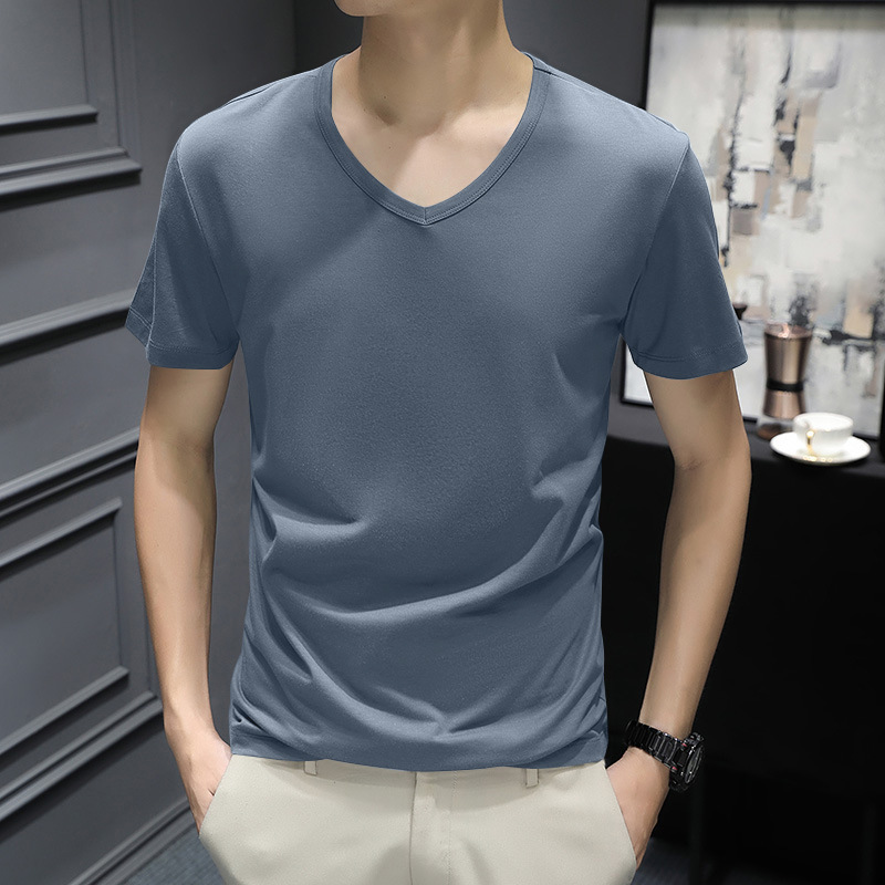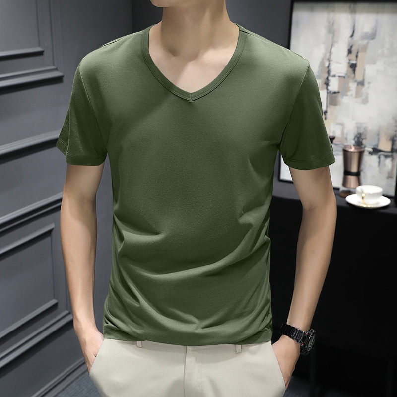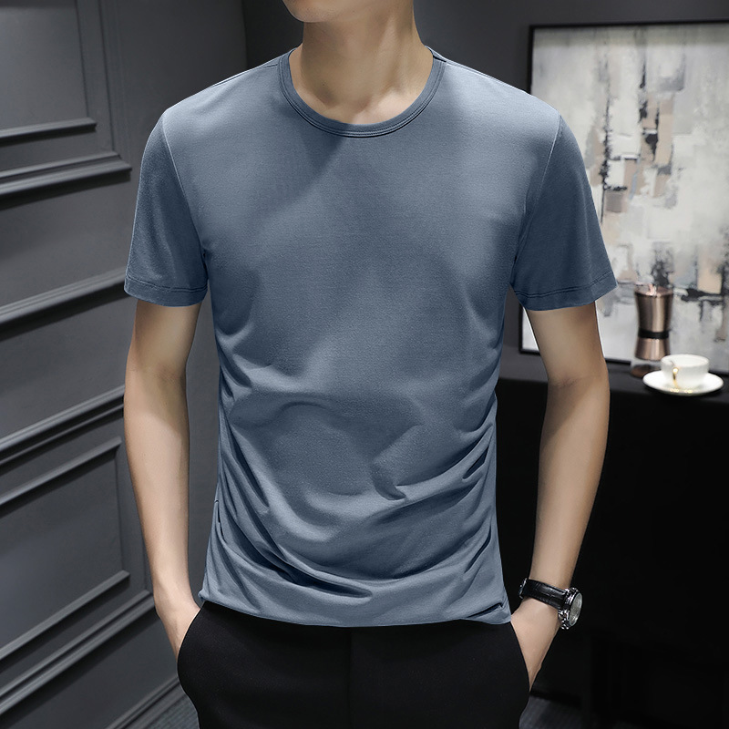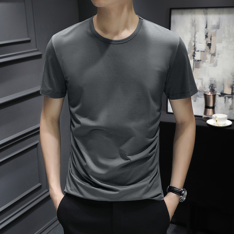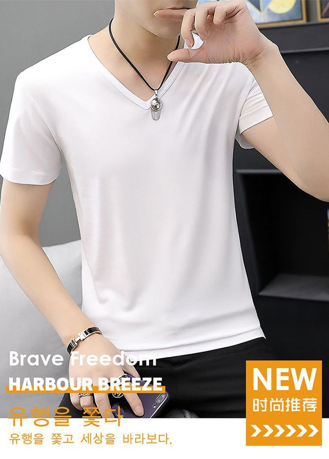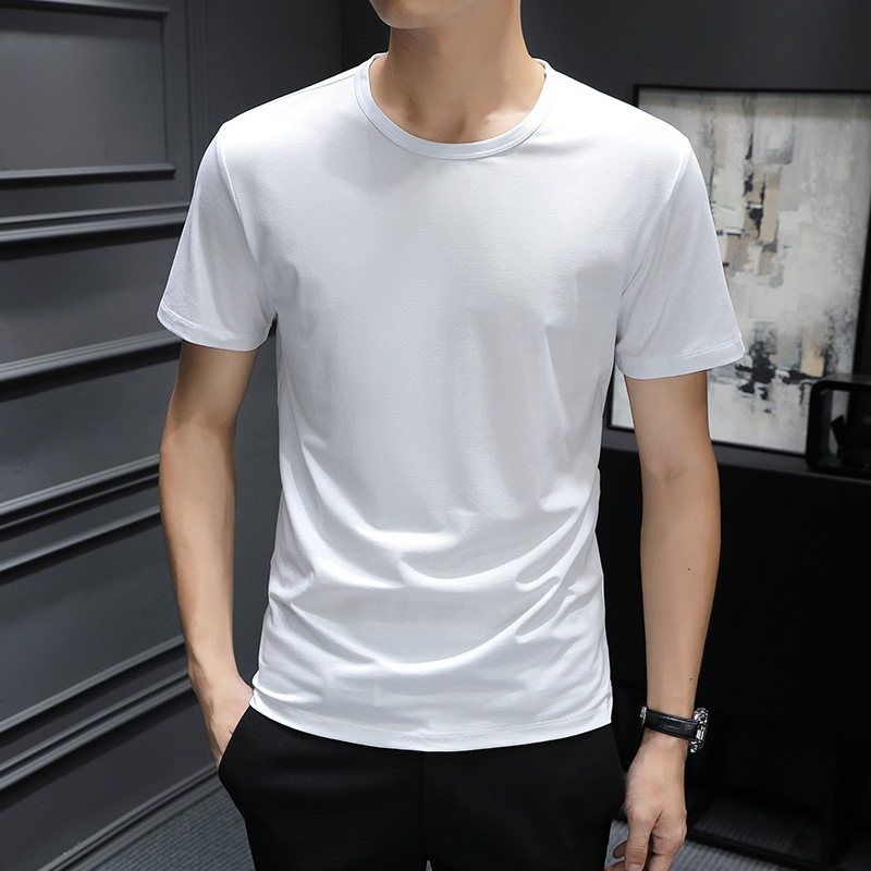 반팔 티셔츠 남성용 여름 얇은 베이스 셔츠 슬림핏 단색 한국 스타일 내부 티셔츠 십대 여름 새로운 스타일