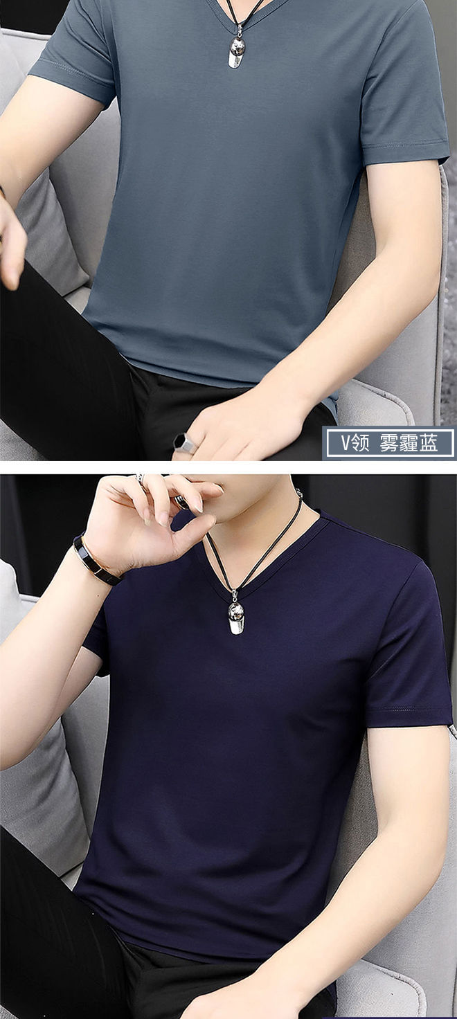 반팔 티셔츠 남성용 여름 얇은 베이스 셔츠 슬림핏 단색 한국 스타일 내부 티셔츠 십대 여름 새로운 스타일스토어 가기
