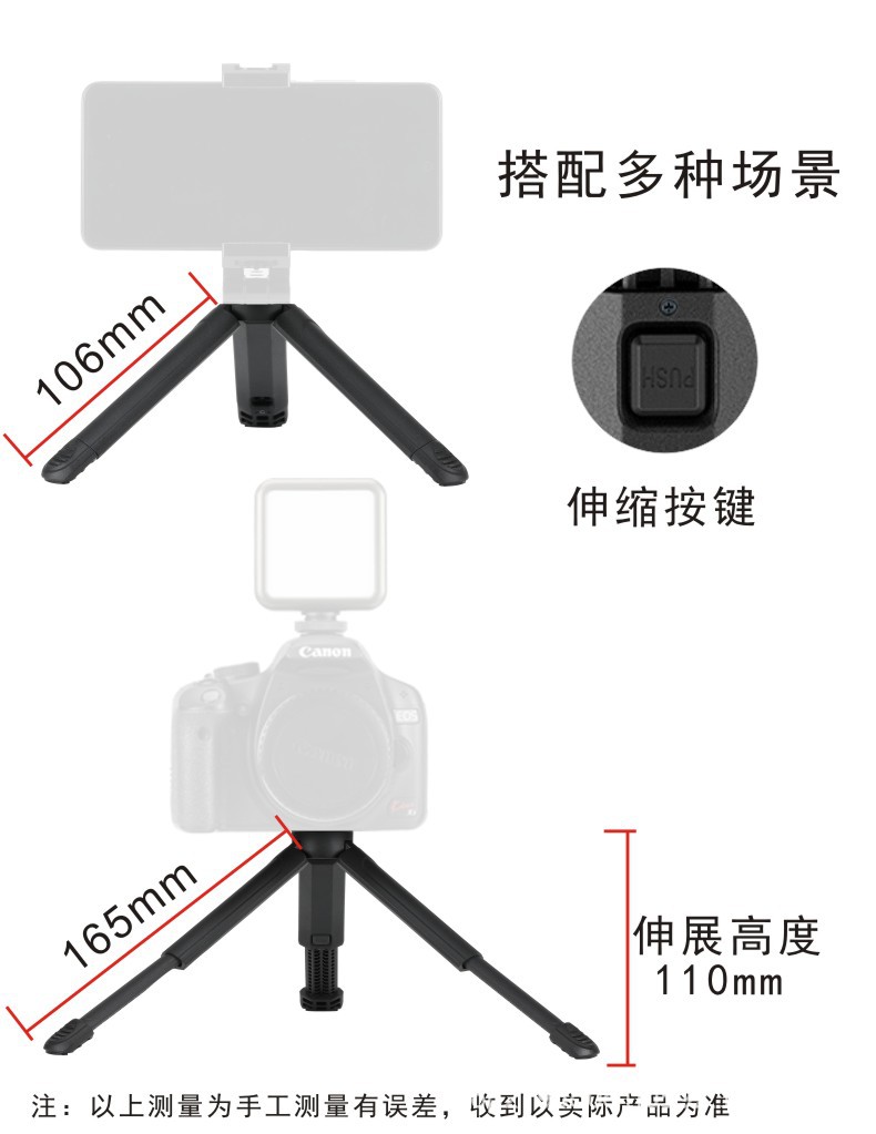 데스크톱 삼각대 휴대 전화 카메라로드 카메라 팬 틸트 브래킷 사진 텔레스코픽 넷 레드 라이브 방송베이스