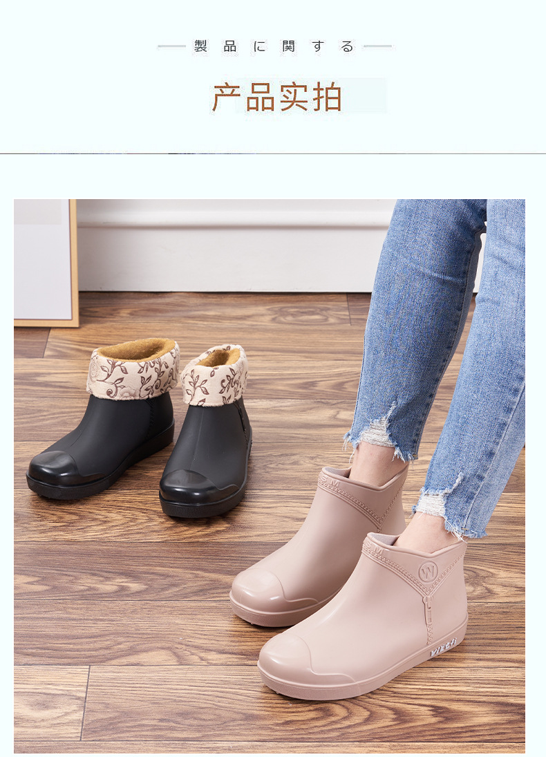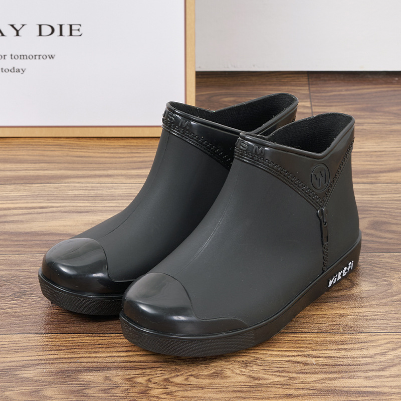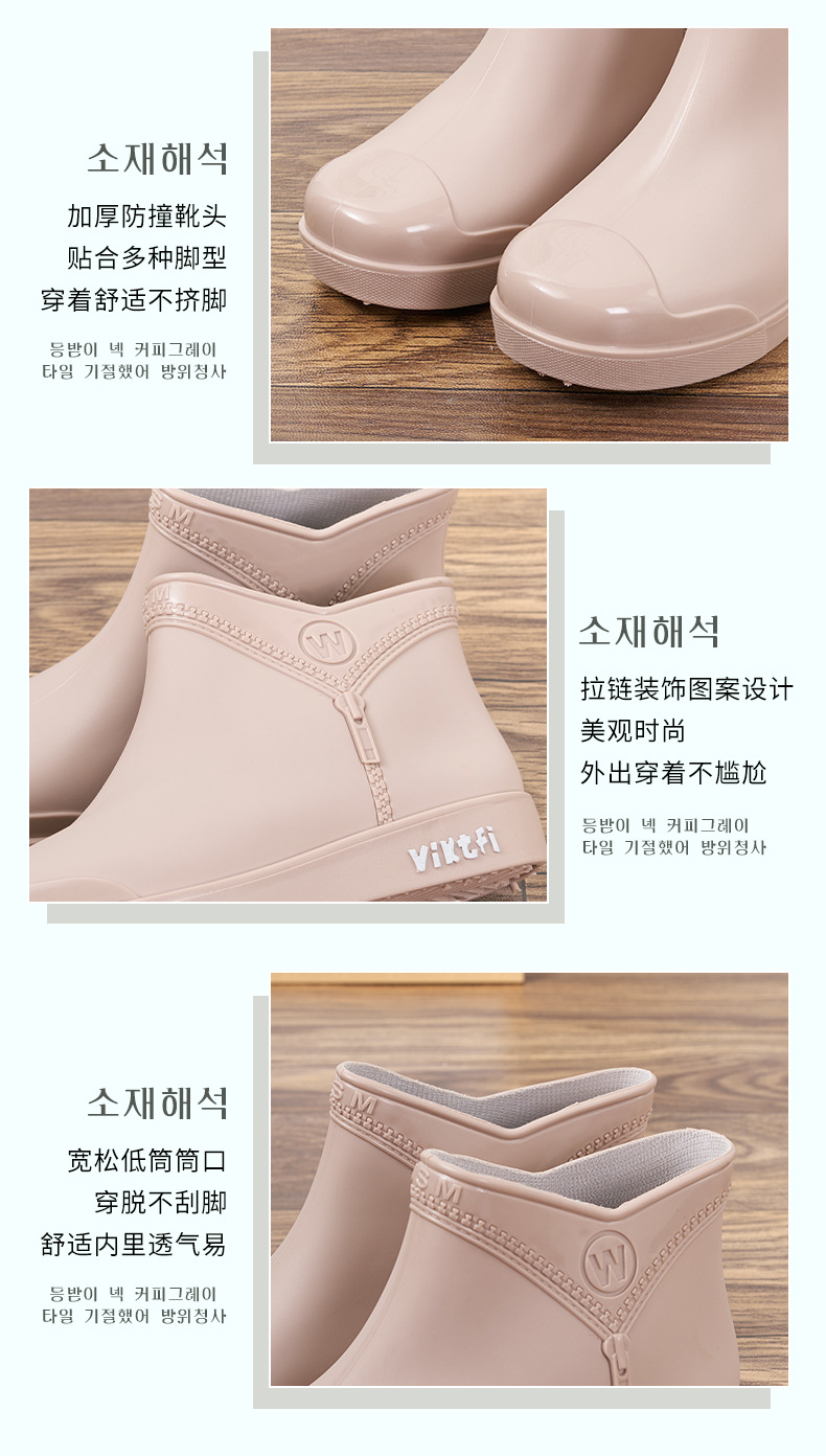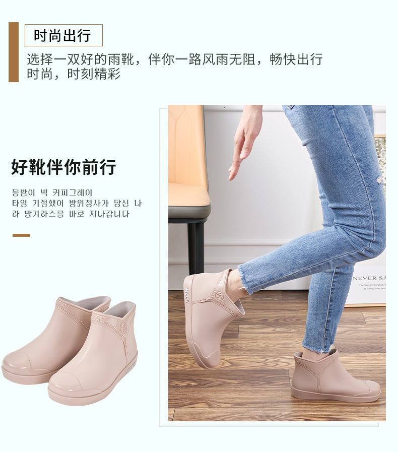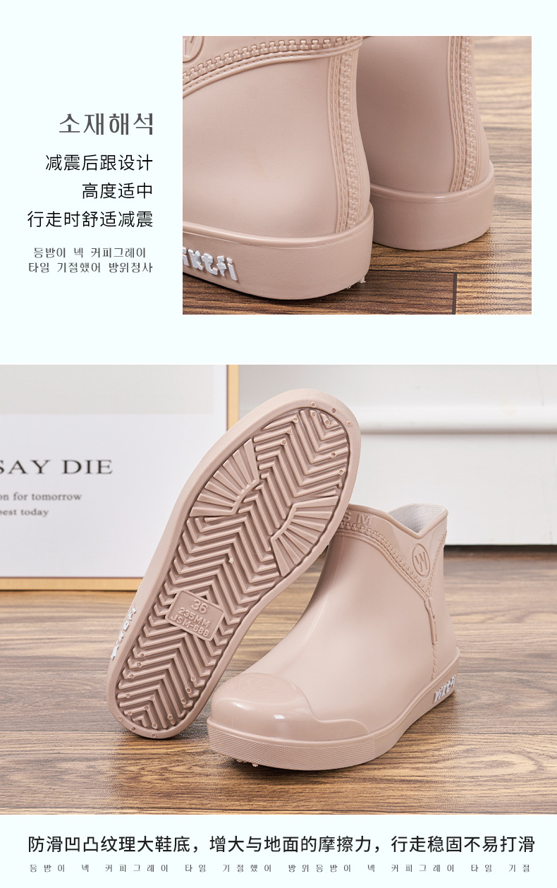 패션 여성용 아우터 장화 편안한 미끄럼 방지 여성용 장화 한국식 경량 로우탑 여성용 고무 신발 플랫 워터 슈즈
