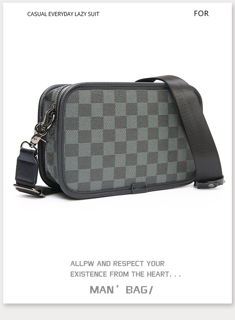 격자 무늬 패션 숄더백 거리 유행 사첼 한국 남성용 크로스 바디 백 야외 통근 작은 사첼