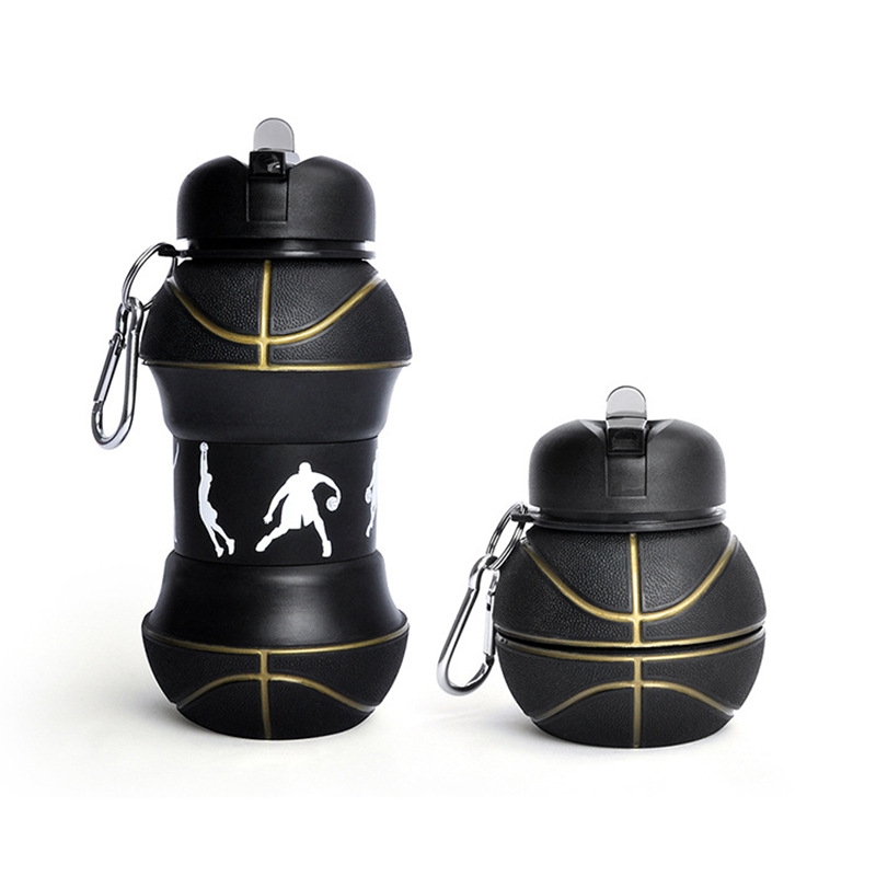 • 550ML 실리콘 접이식 농구 물컵 블랙 (컬러 박스 포장)