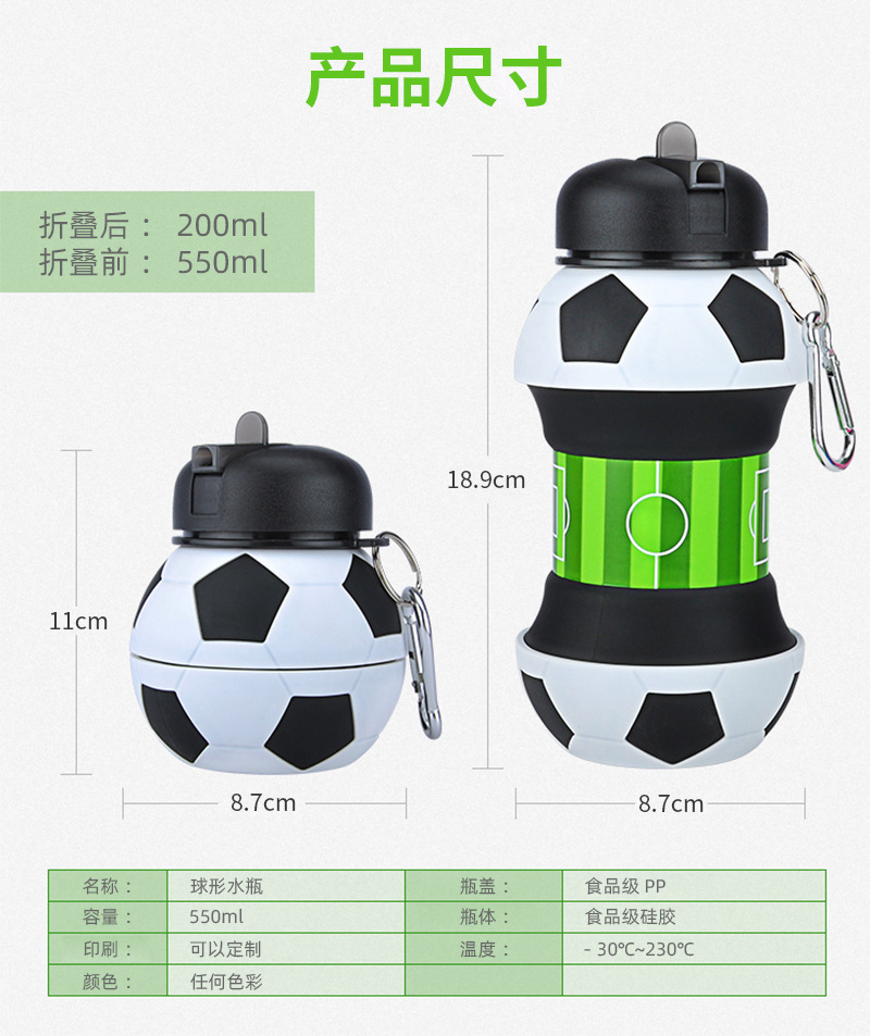 • 550ML 실리콘 접이식 축구 물병 (컬러 박스 포장)