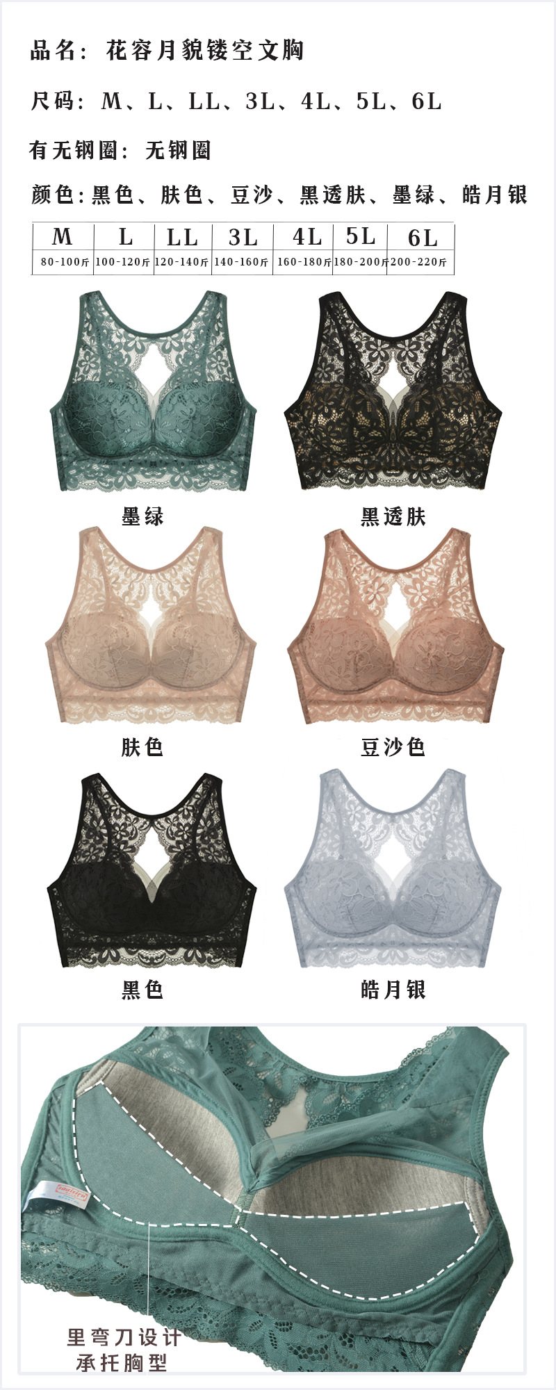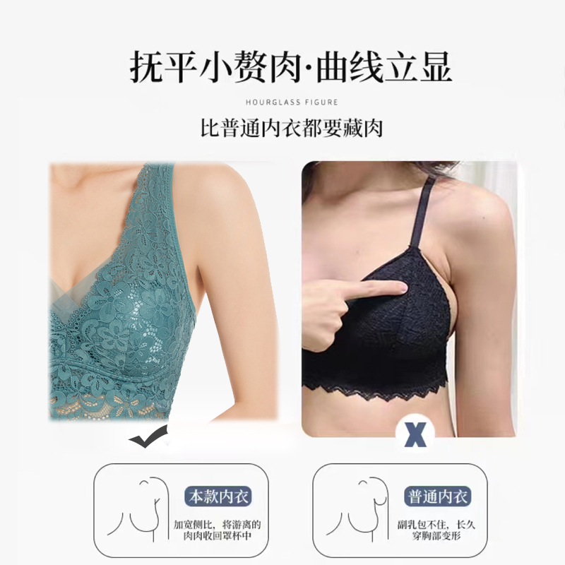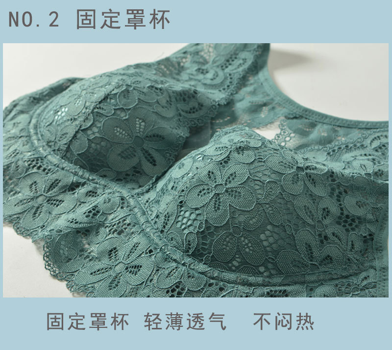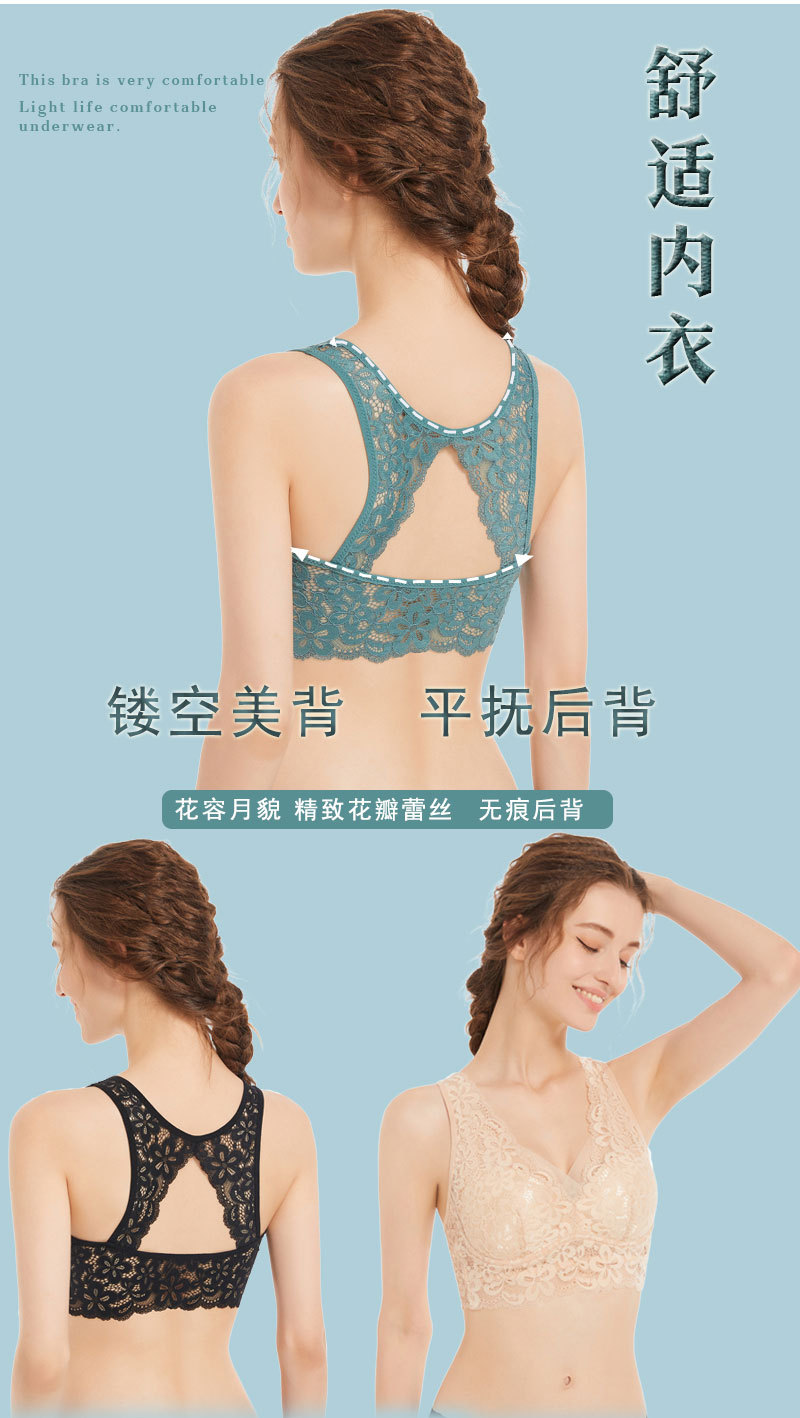 와이어 프리 대형 순수 레이스 얇은 이음매없는 통기성 편안한 속옷 여성용 섹시한 유방 수축 푸시 업 아름다운 등 브래지어스토어 가기