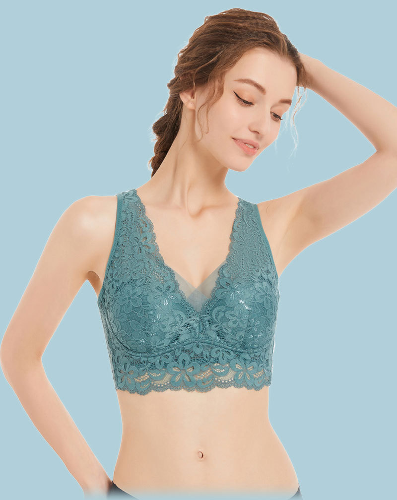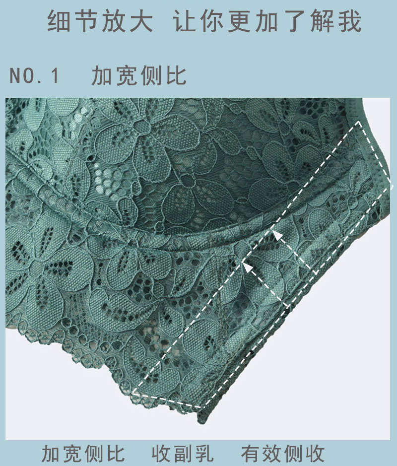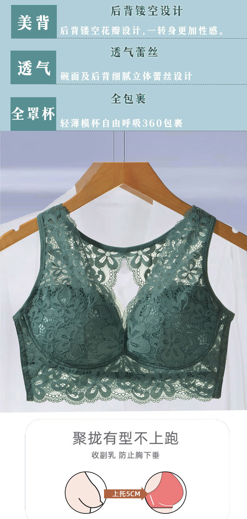 와이어 프리 대형 순수 레이스 얇은 이음매없는 통기성 편안한 속옷 여성용 섹시한 유방 수축 푸시 업 아름다운 등 브래지어