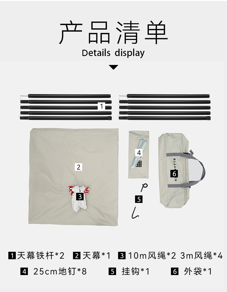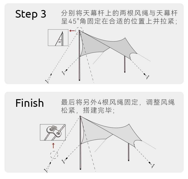 • 연꽃 잎 세트 포함 캐노피 + 2 극 + 바람 로프 손톱)