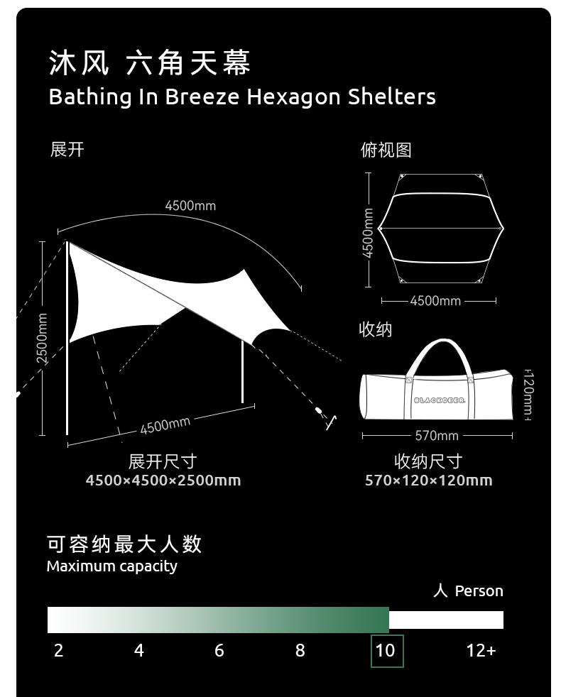 블랙디어 블랙 디어 야외 숲 캠핑 무풍 육각 캐노피 방수 차양 실버 자외선 차단제 천막