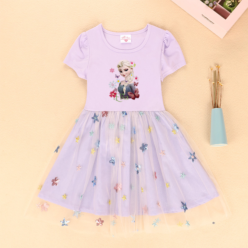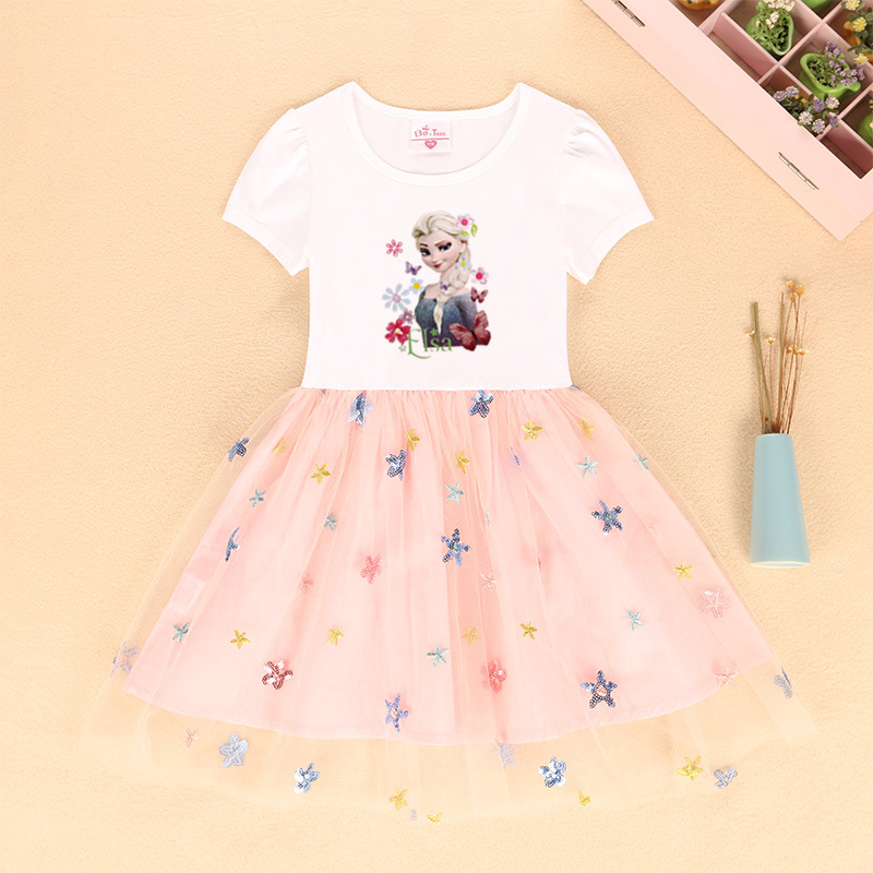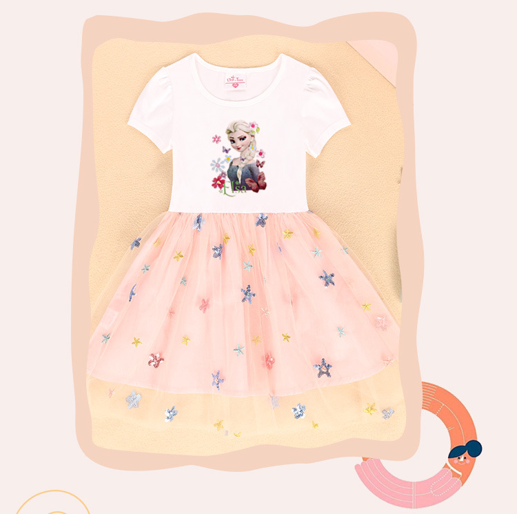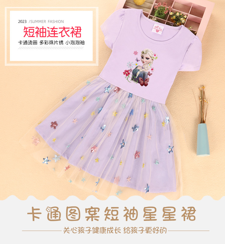 여자 원피스 여름 2023 새로운 짧은 소매 원피스 별 메쉬 어린이 만화 패턴 스커트스토어 가기