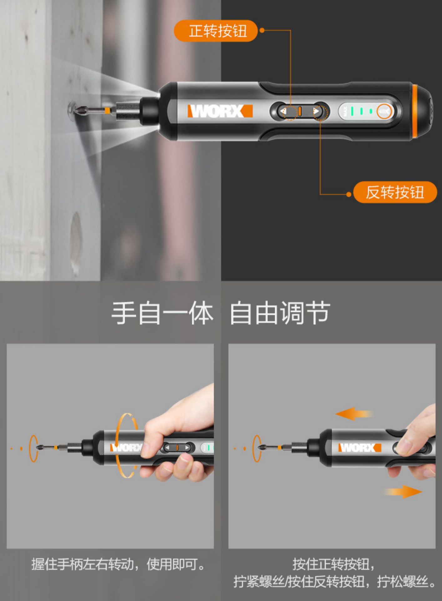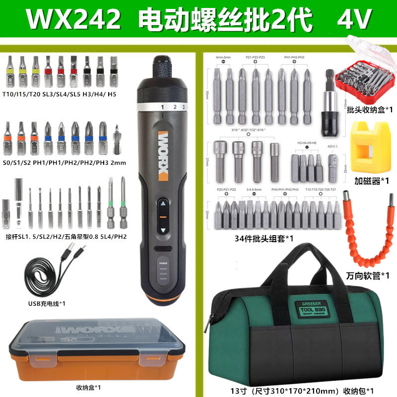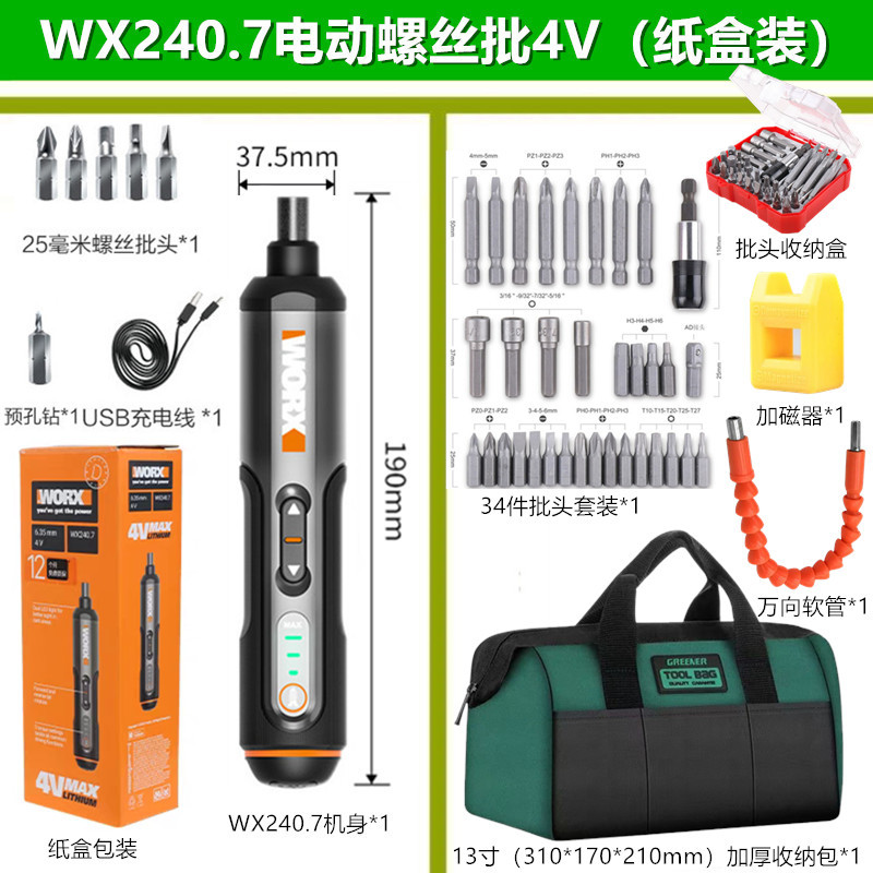 Wicks WX240 충전식 전기 드라이버 가정용 전기 스크루 드라이버 전자 기계 배치 WX242 드라이버 WORX스토어 가기