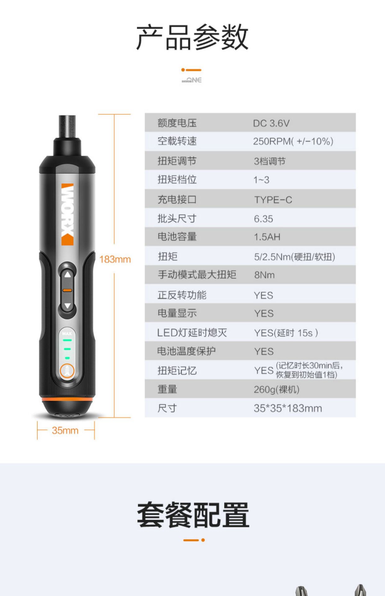 • WX242 전동 드라이버가 표준으로 제공됩니다.