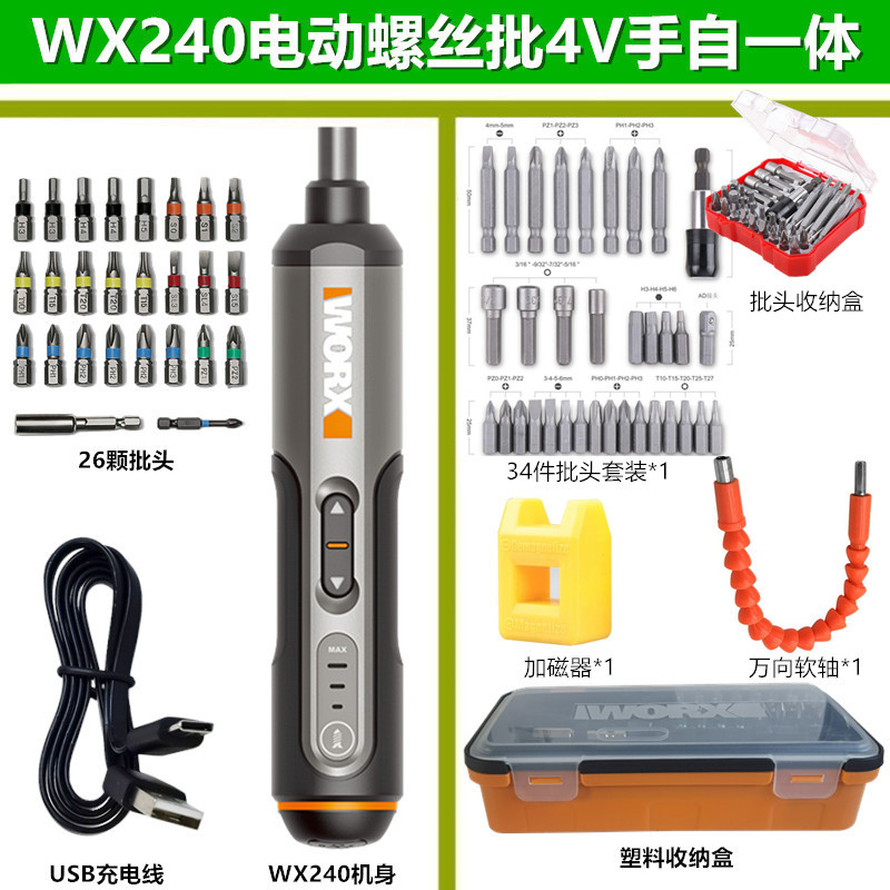Wicks WX240 충전식 전기 드라이버 가정용 전기 스크루 드라이버 전자 기계 배치 WX242 드라이버 WORX