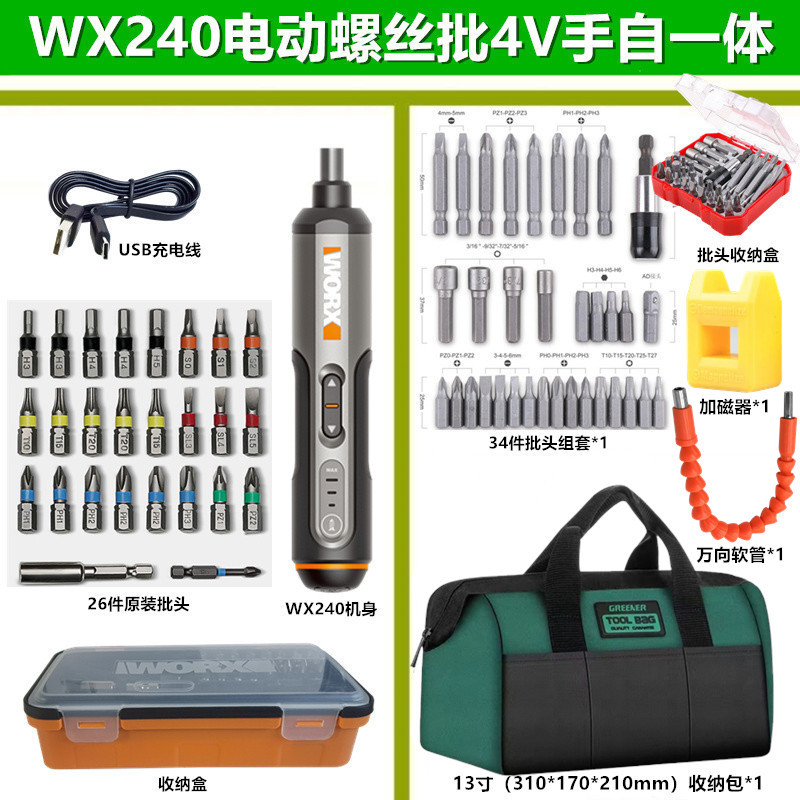 • WX240 전동 드라이버가 표준으로 제공됩니다.