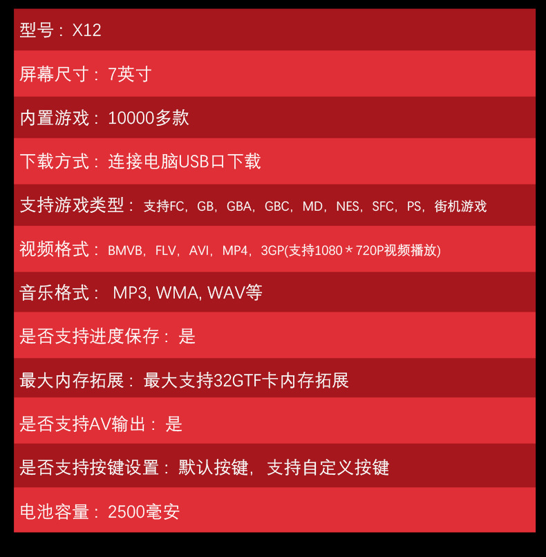 X12Plus 듀얼 로커 게임기 7 "HD 대형 화면 PSP 휴대용 게임기 16G 향수 아케이드 휴대용