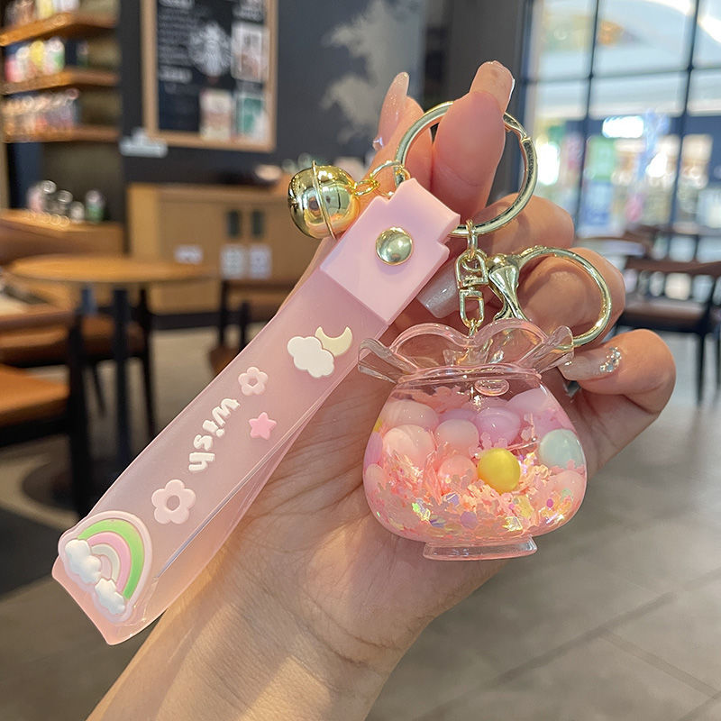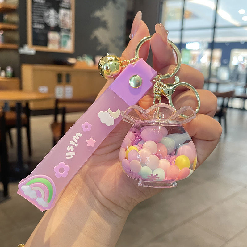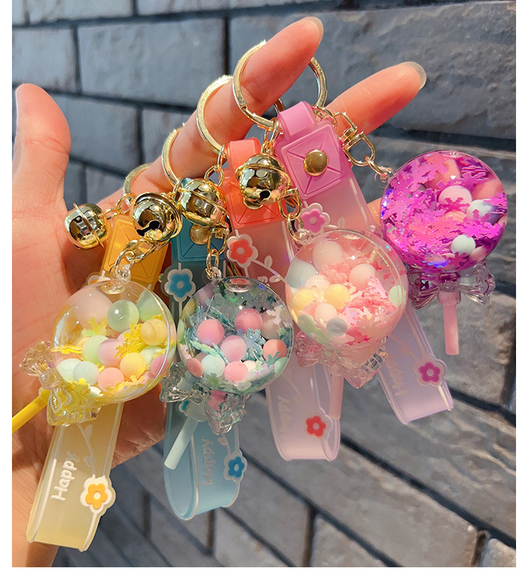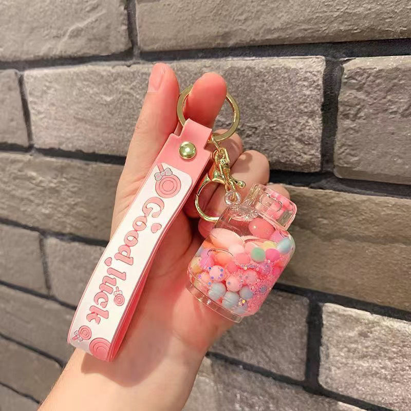 오디오 네트워크 빨간색 작은 보석 작은 펜던트 귀여운 롤리팝 거품 구슬 오일 quicksand 부동 병 키 체인 도매스토어 가기