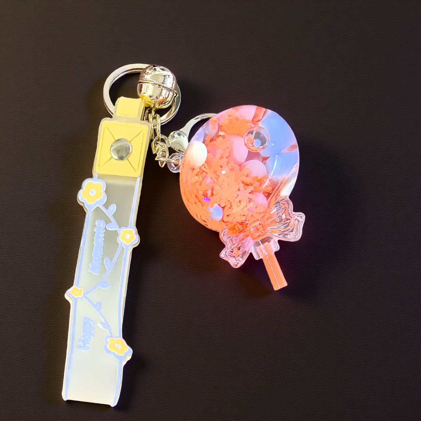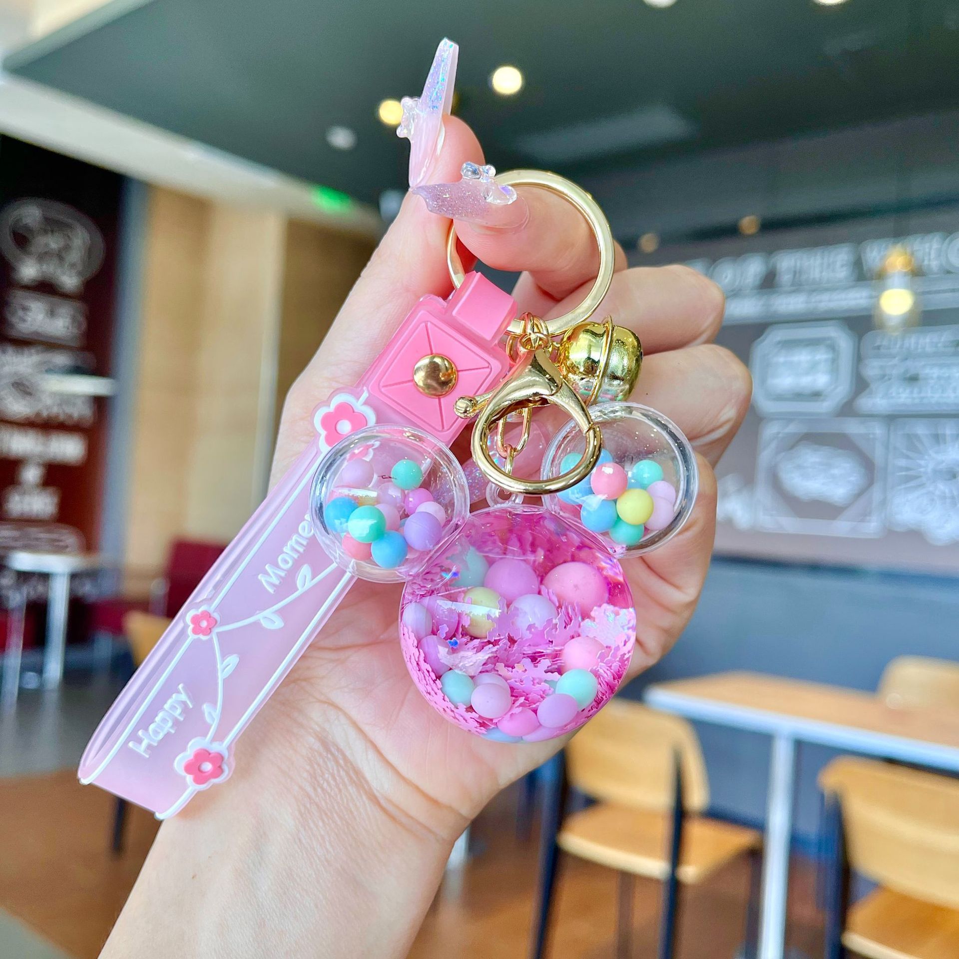오디오 네트워크 빨간색 작은 보석 작은 펜던트 귀여운 롤리팝 거품 구슬 오일 quicksand 부동 병 키 체인 도매