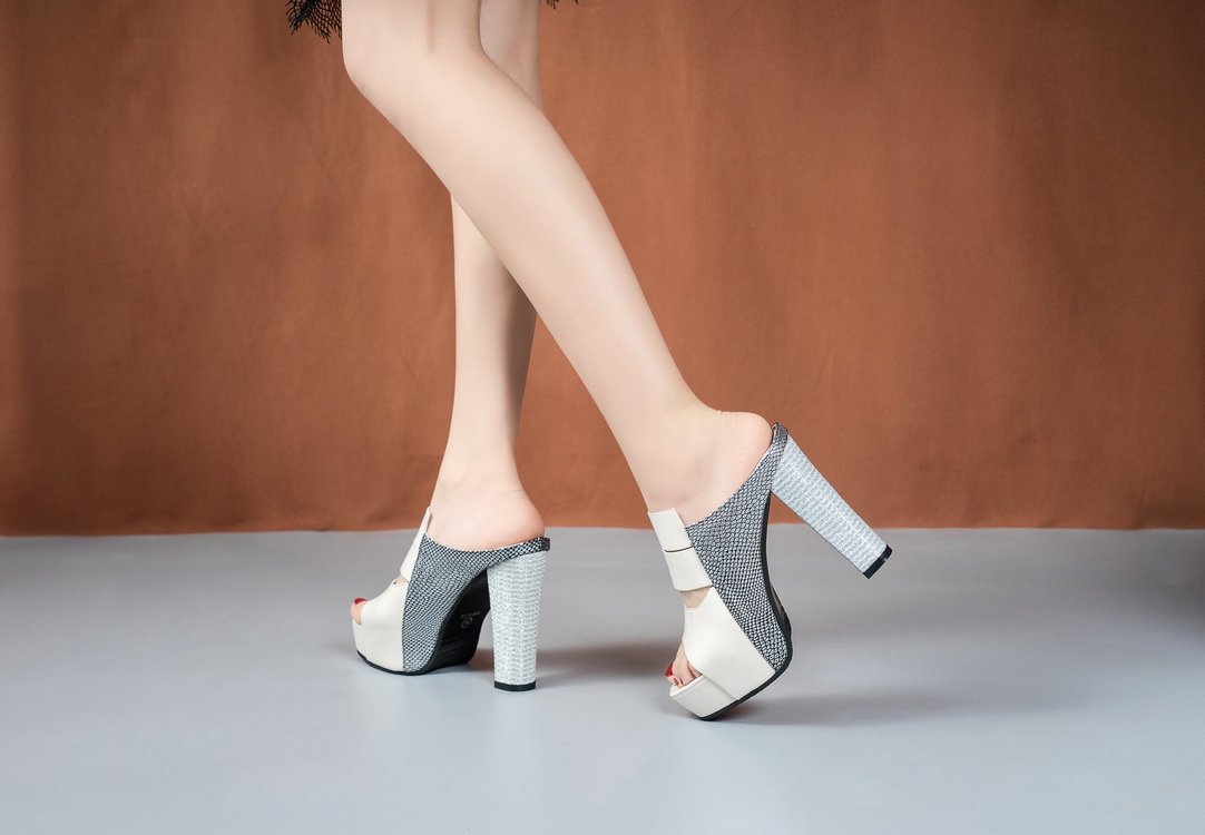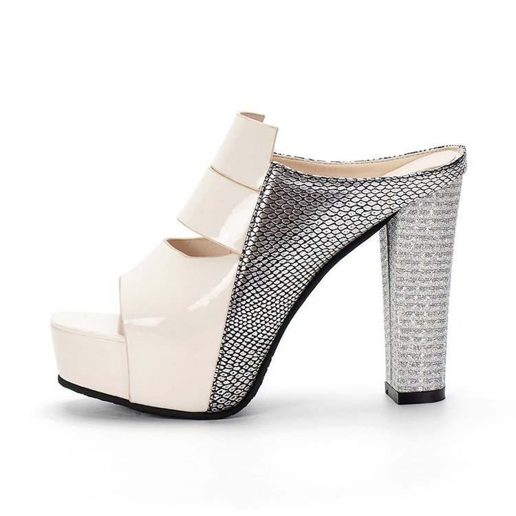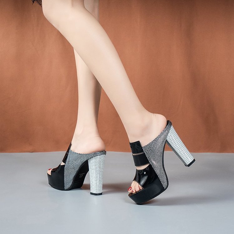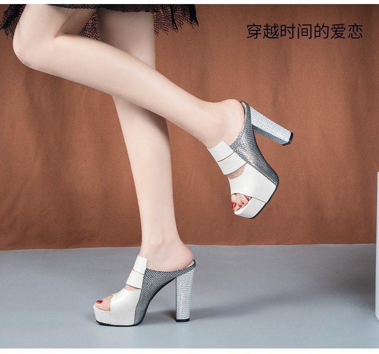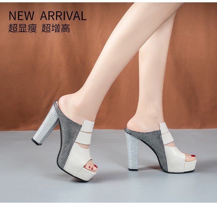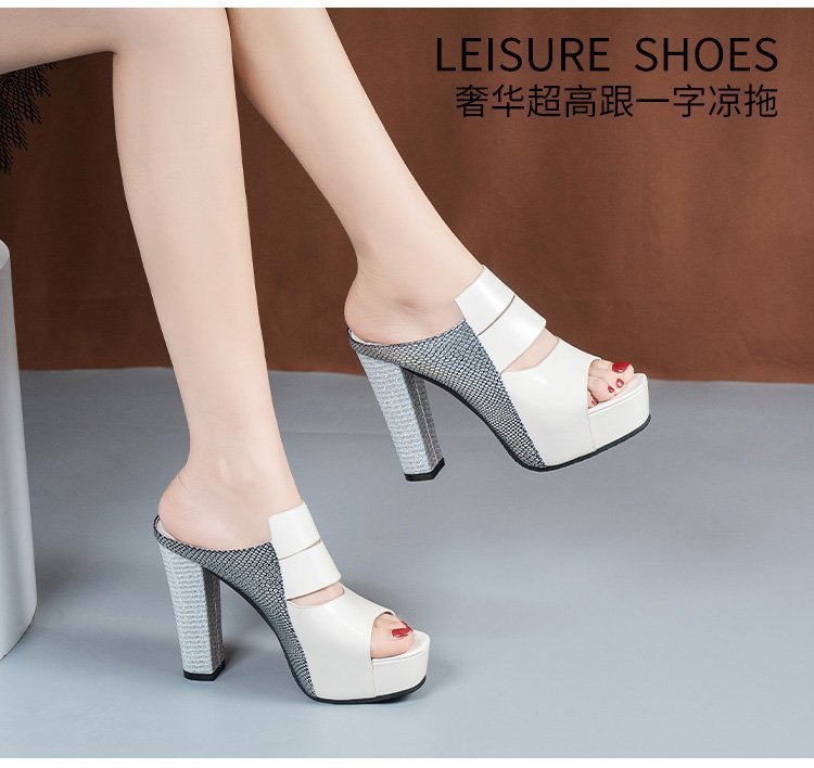슈퍼 하이힐 청키 힐 물고기 입 샌들과 슬리퍼 여성용 2023 여름 새로운 영국 스타일 한 단어 플랫폼 겉옷 슬리퍼 트렌디스토어 가기