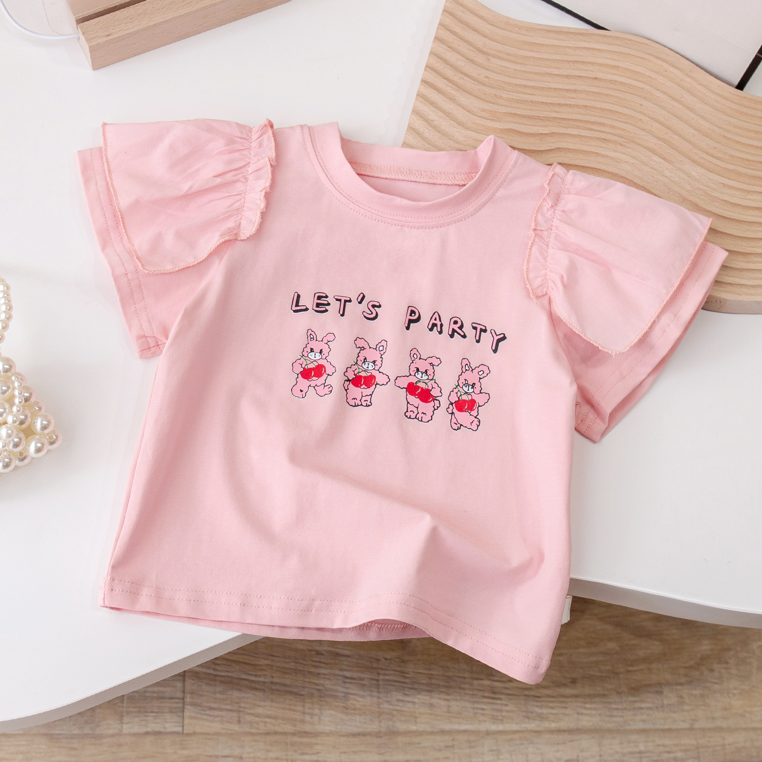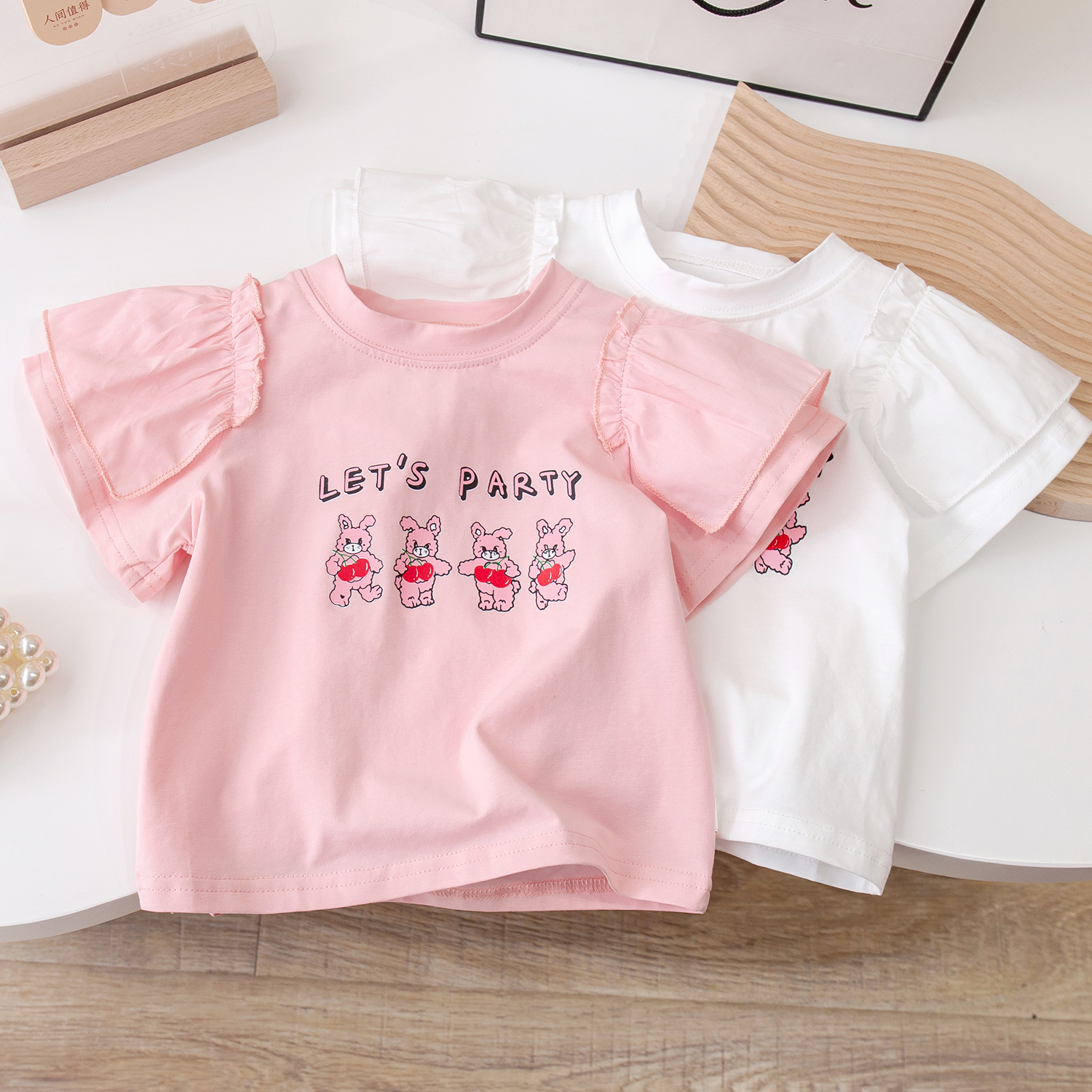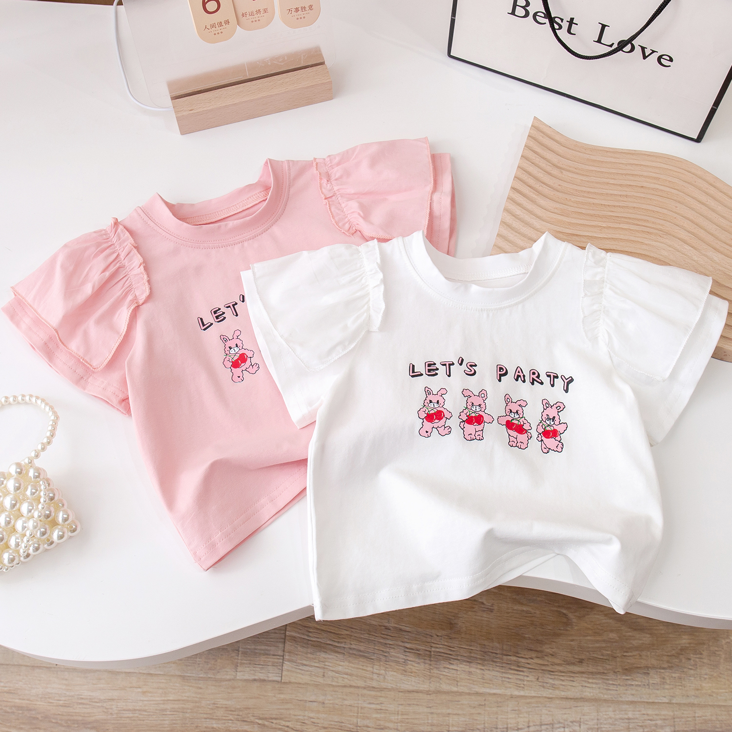 女宝韩版夏季新品短袖上衣卡通小兔子简约百搭时尚洋气飞袖t恤夏