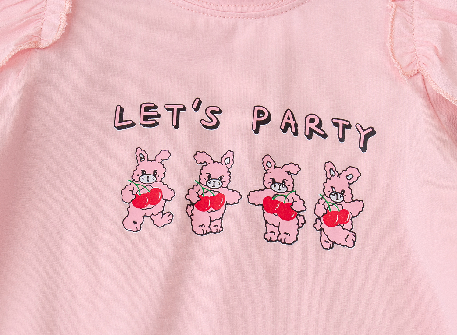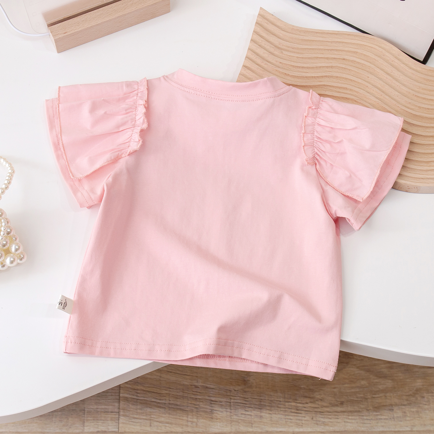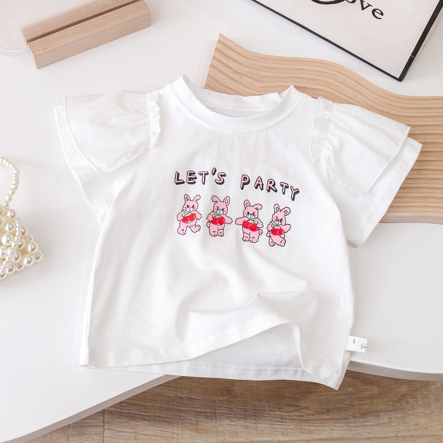 女宝韩版夏季新品短袖上衣卡通小兔子简约百搭时尚洋气飞袖t恤夏