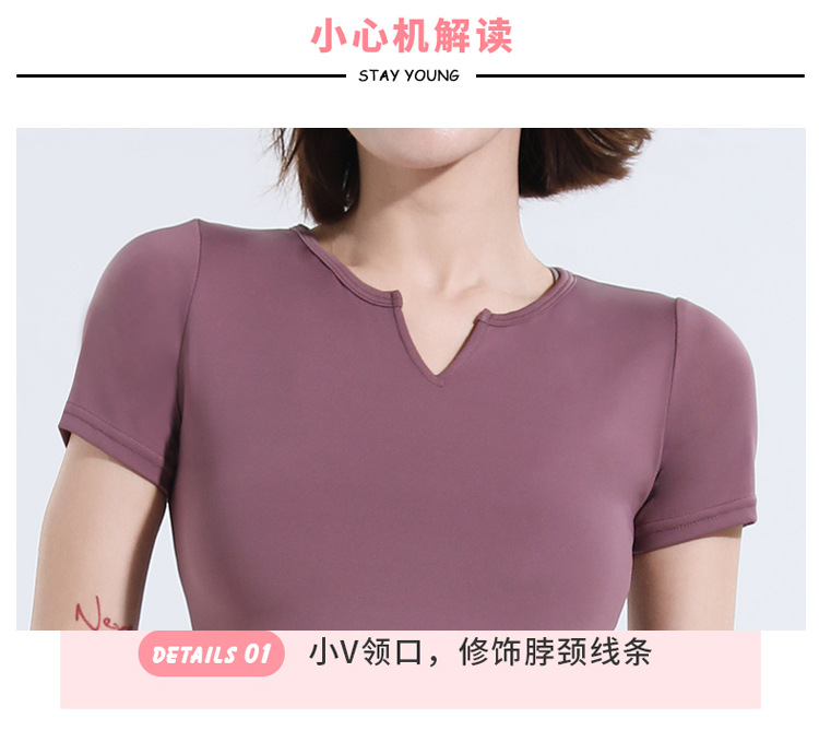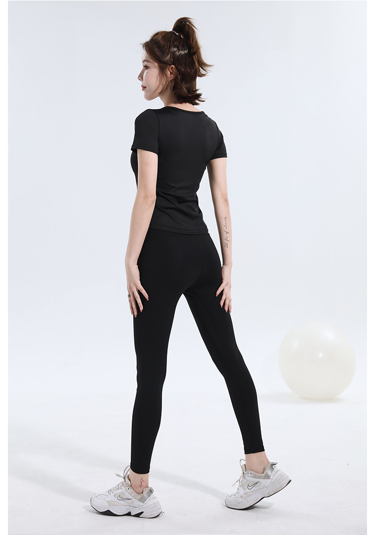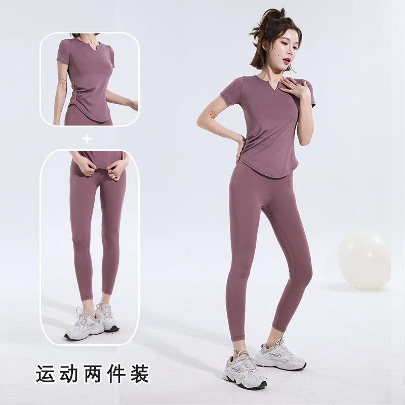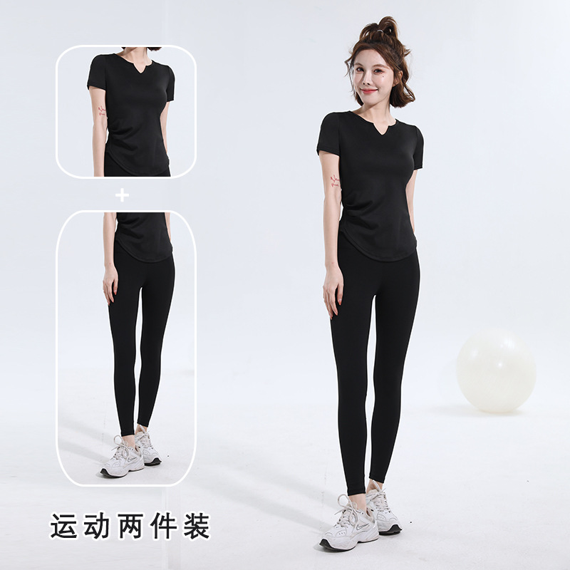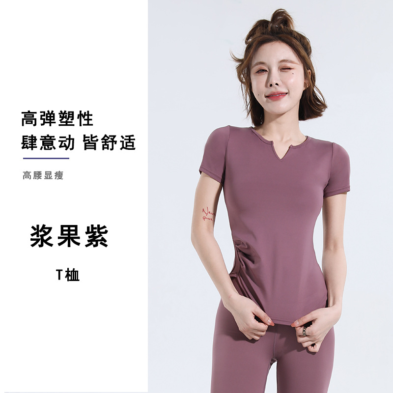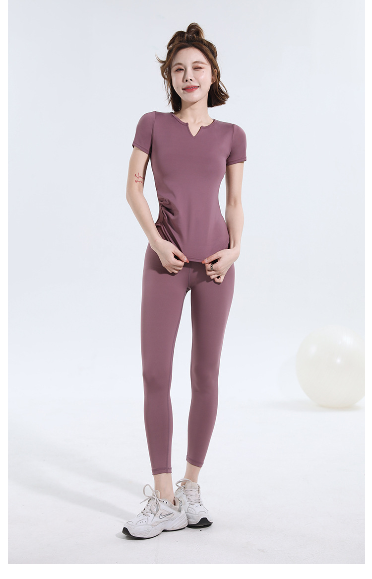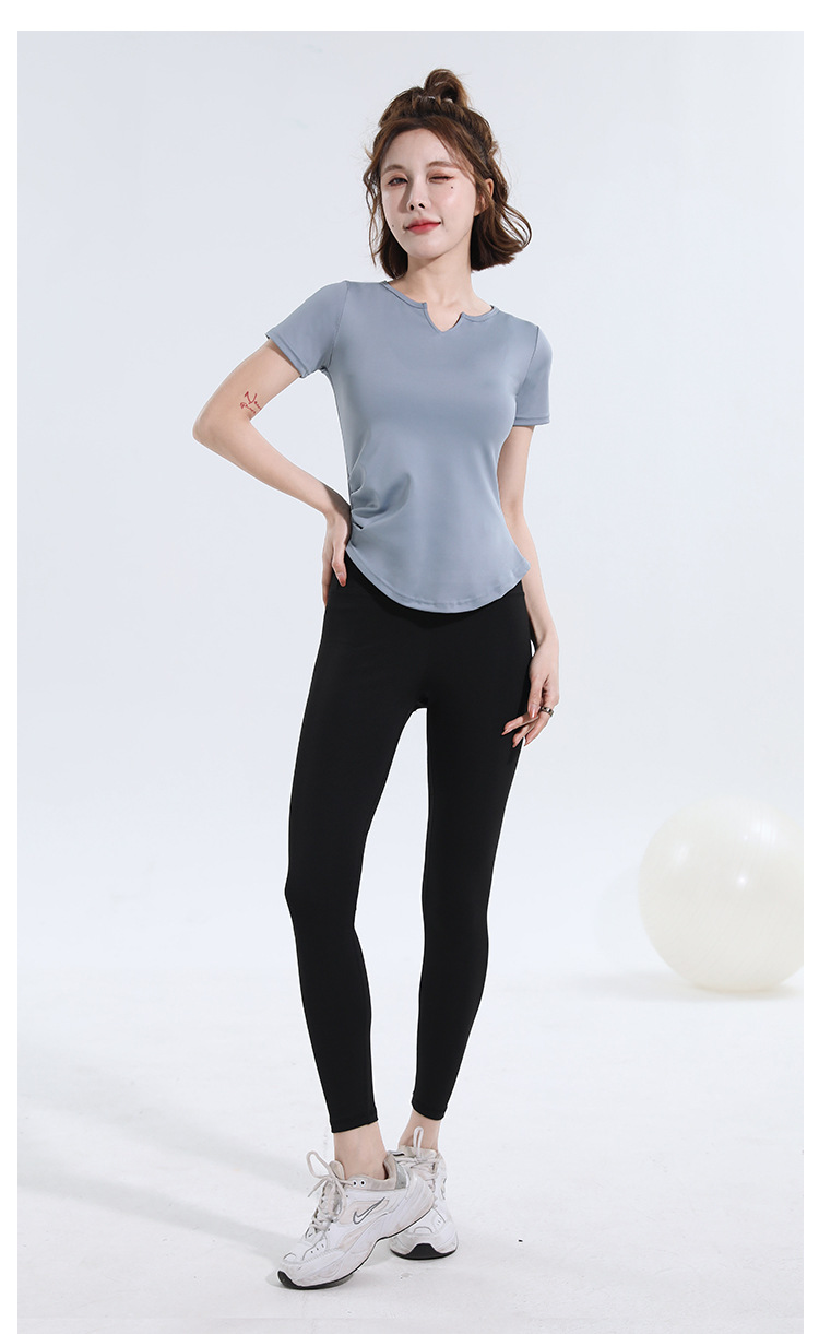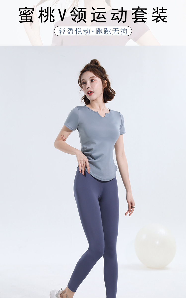 V-넥 반팔 티셔츠 속건 알몸 원활한 요가 세트 주름 허리 슬리밍 꽉 스포츠 피트니스 탑