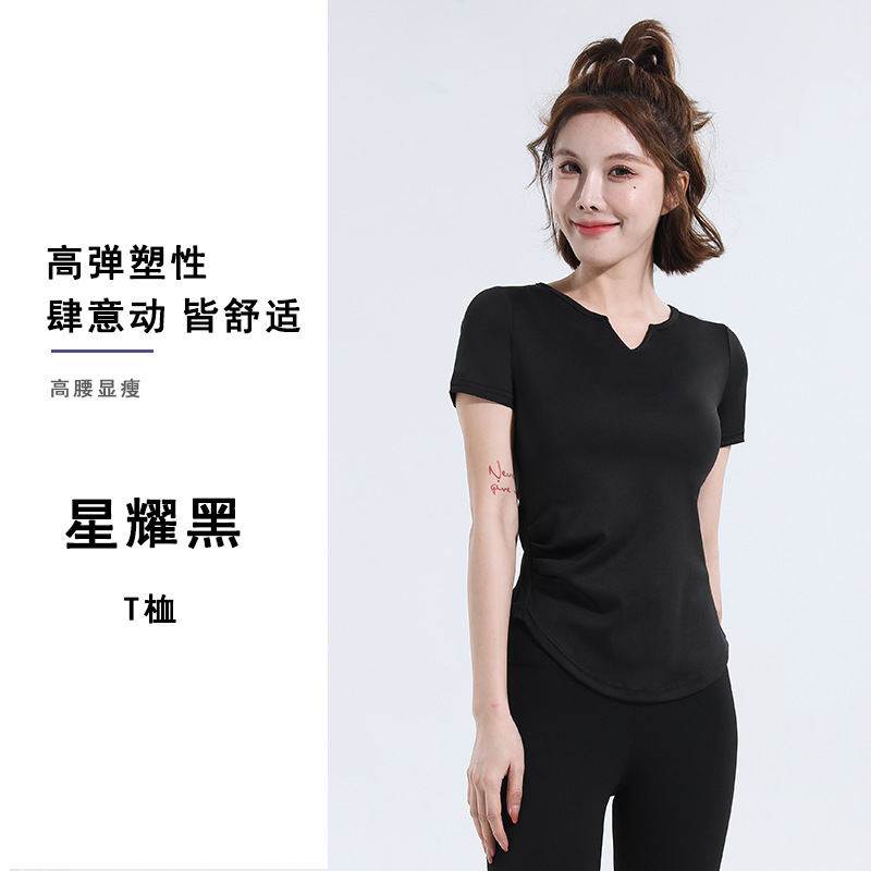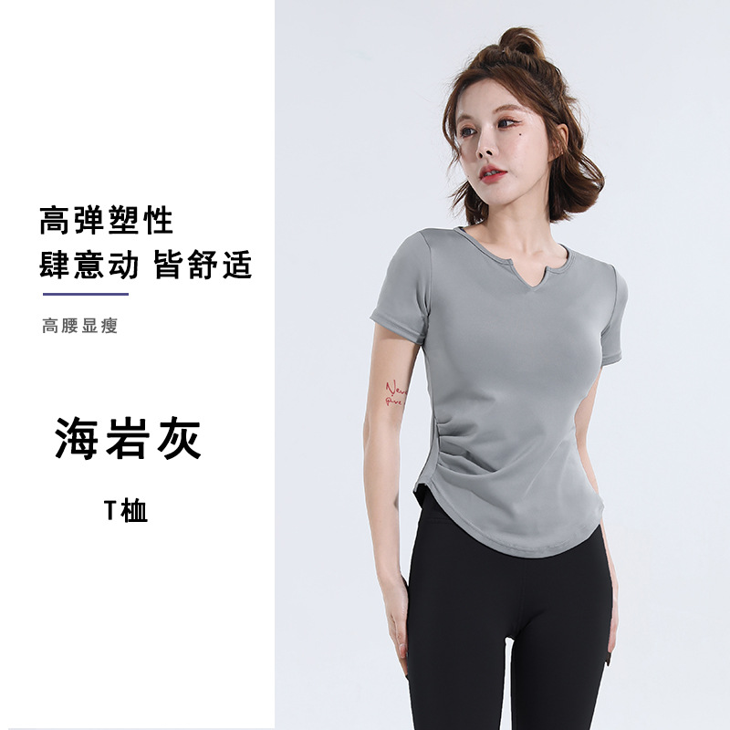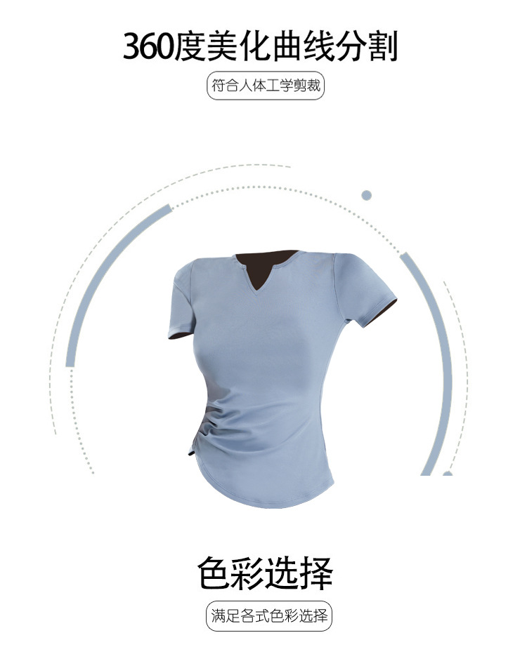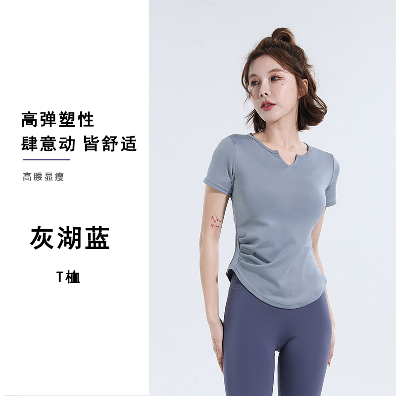 V-넥 반팔 티셔츠 속건 알몸 원활한 요가 세트 주름 허리 슬리밍 꽉 스포츠 피트니스 탑스토어 가기