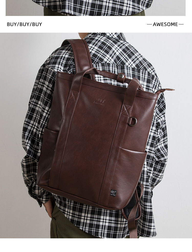 한국 남자의 여행 배낭 레트로 PU 가죽 학생 책가방 개인화 된 패션 대용량 배낭 컴퓨터 배낭스토어 가기