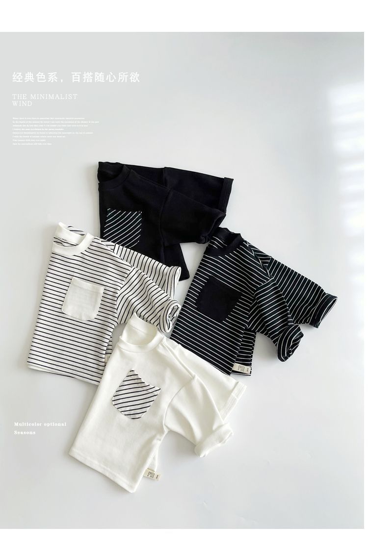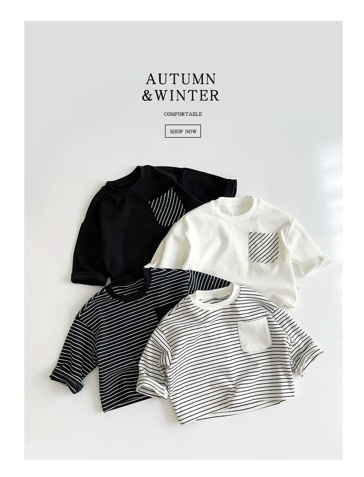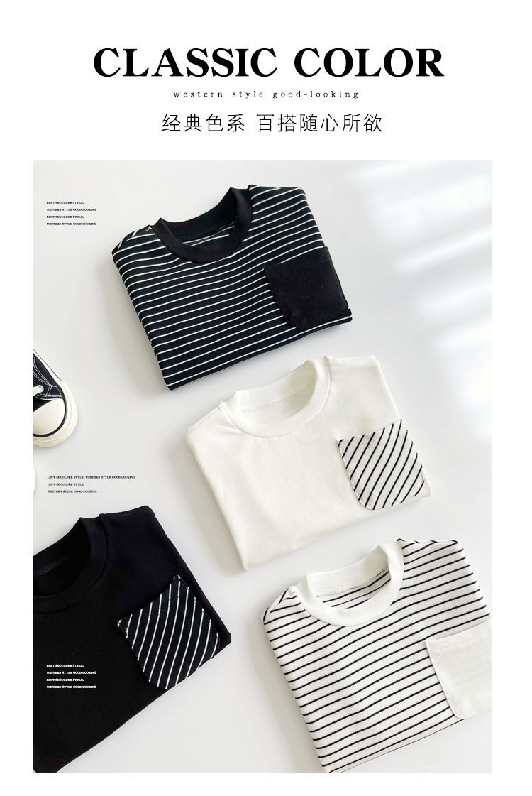 소년 스트라이프 바닥 셔츠 2022 봄, 가을 새로운 어린이 긴팔 티셔츠 소년과 소녀를위한 얇은 스타일상의스토어 가기