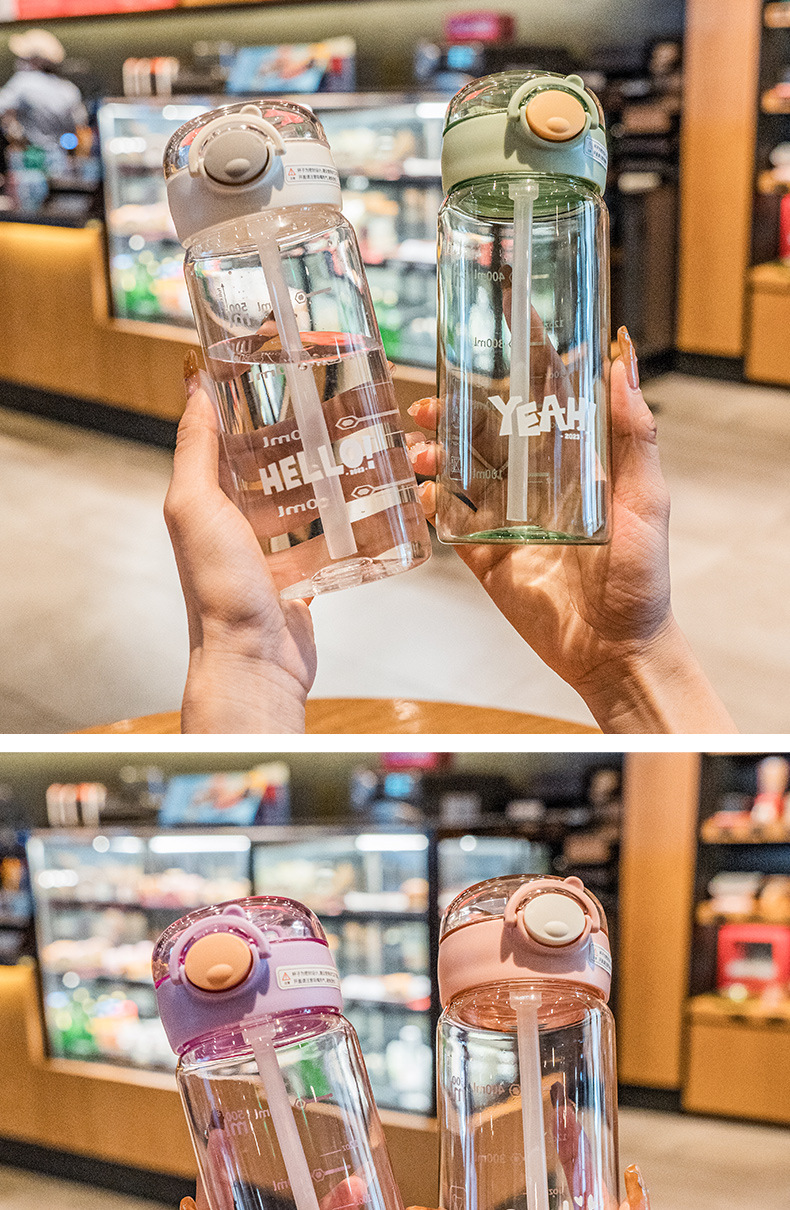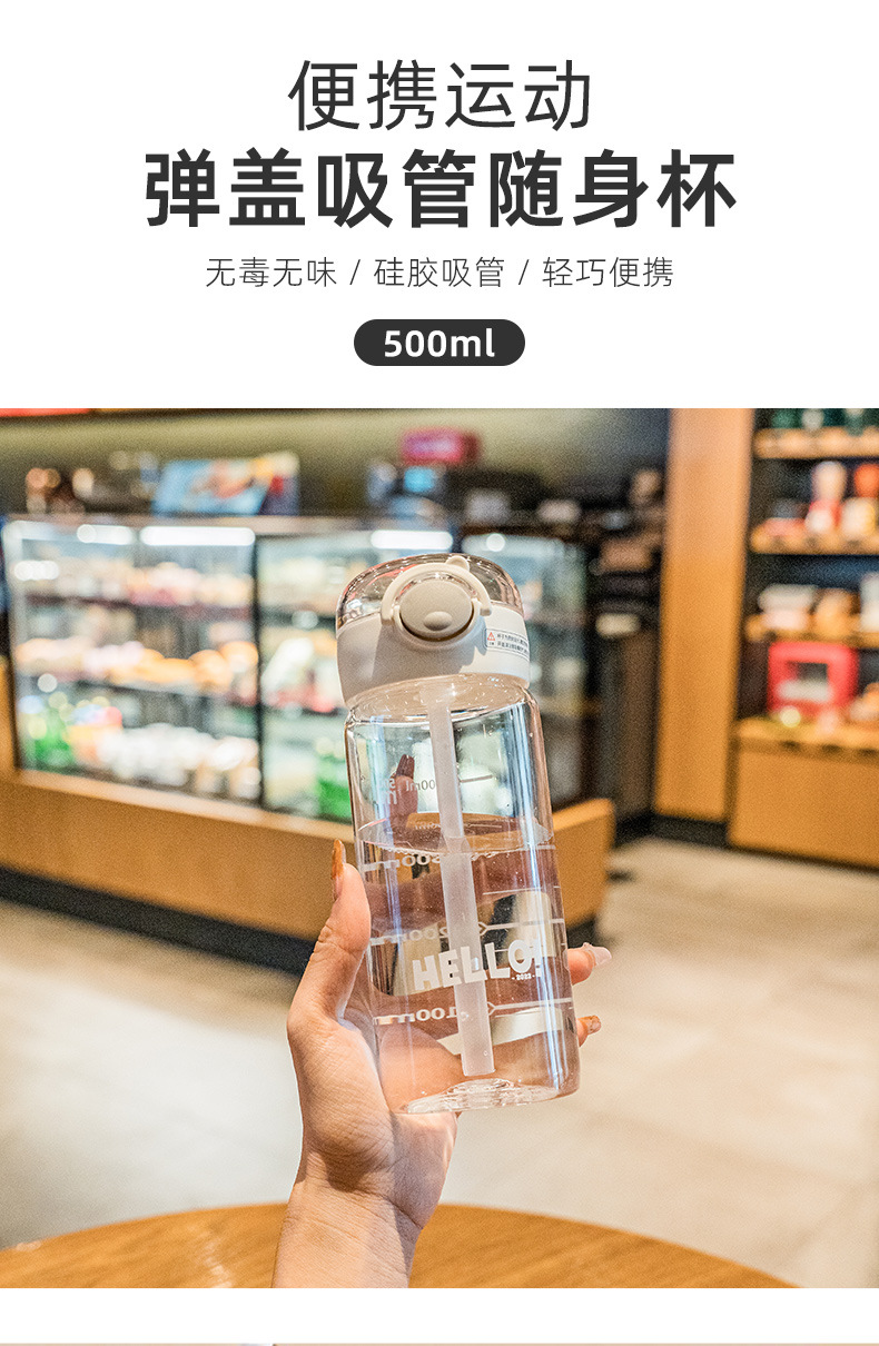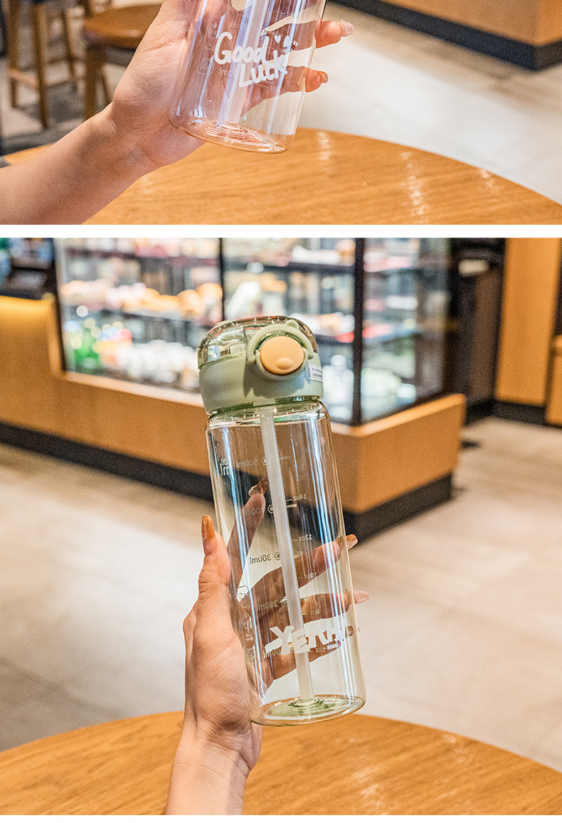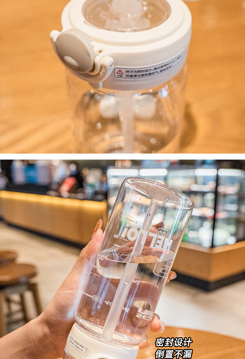 풍수컵 한국식 학생 휴대용 사용하기 쉬운 컵 낙하 방지 흡입 튜브 컵 틈새 간단한 플라스틱 물컵스토어 가기