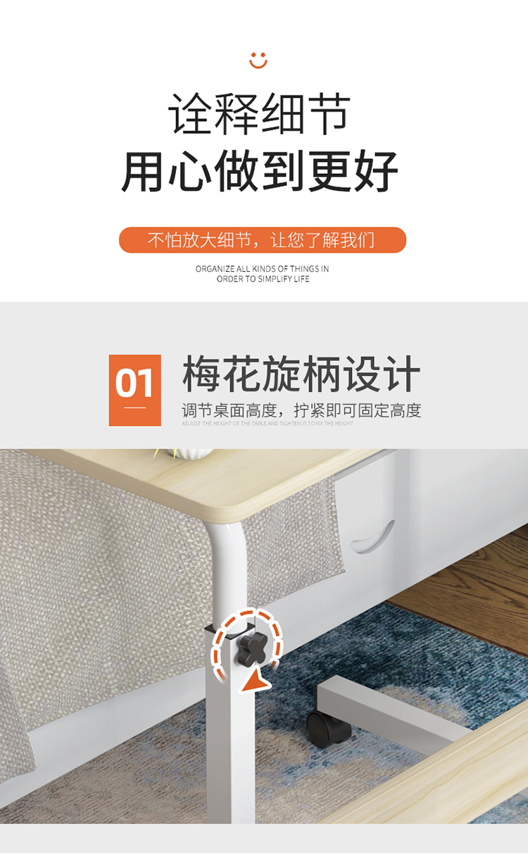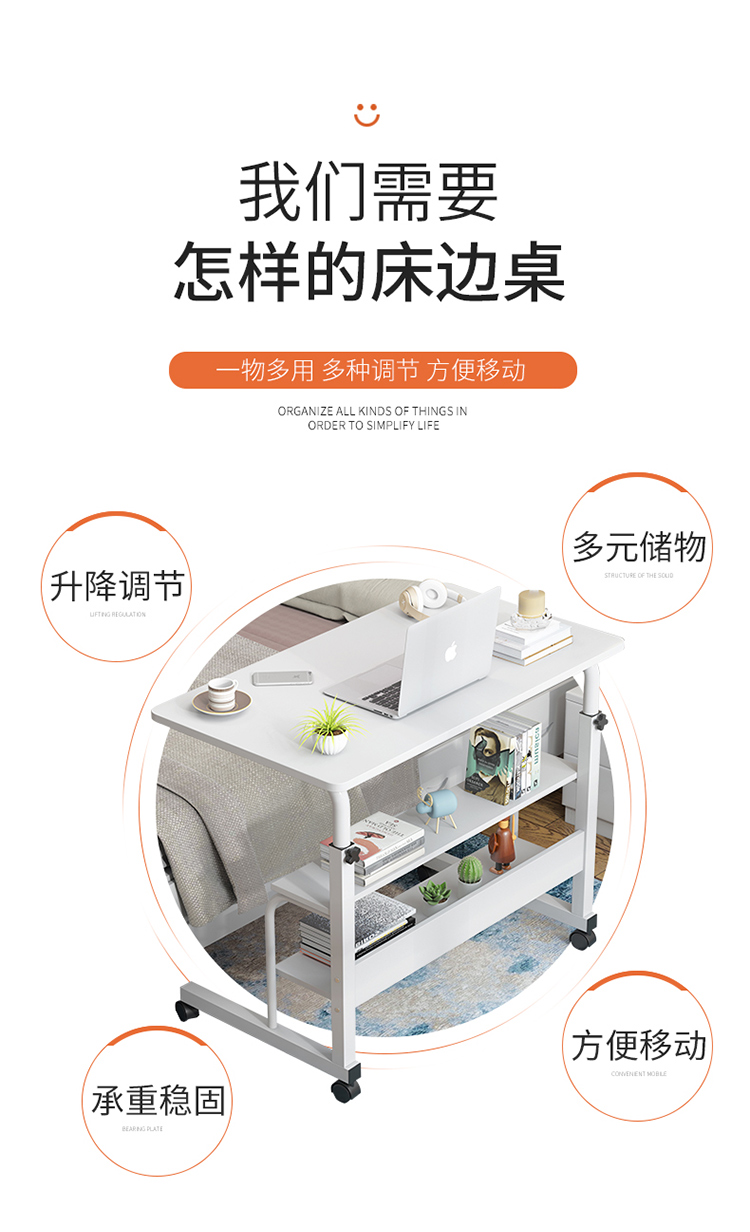 침대 작은 테이블 기숙사 임대 집 침대 옆 이동식 리프팅 게으른 컴퓨터 책상 바퀴 달린 침실 홈스토어 가기