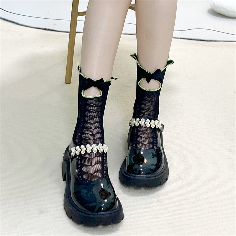 새로운 중국 치파오 버클 양말 여성용 여름 얇은 코일 버클 미드 튜브 레이스 중공 송아지 짧은 양말 내셔널 스타일 디자인 센스스토어 가기