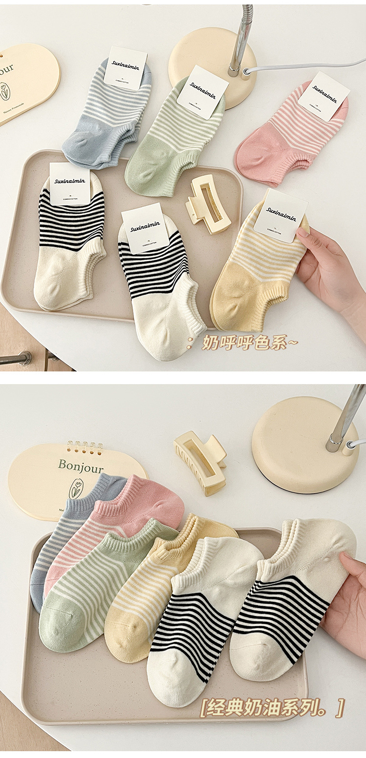 Suxinaimin 봄과 여름 핀 스트라이프 보트 양말 일본 해군 스타일 어린이를위한 모든 매치 크림 얕은 입 면 양말스토어 가기