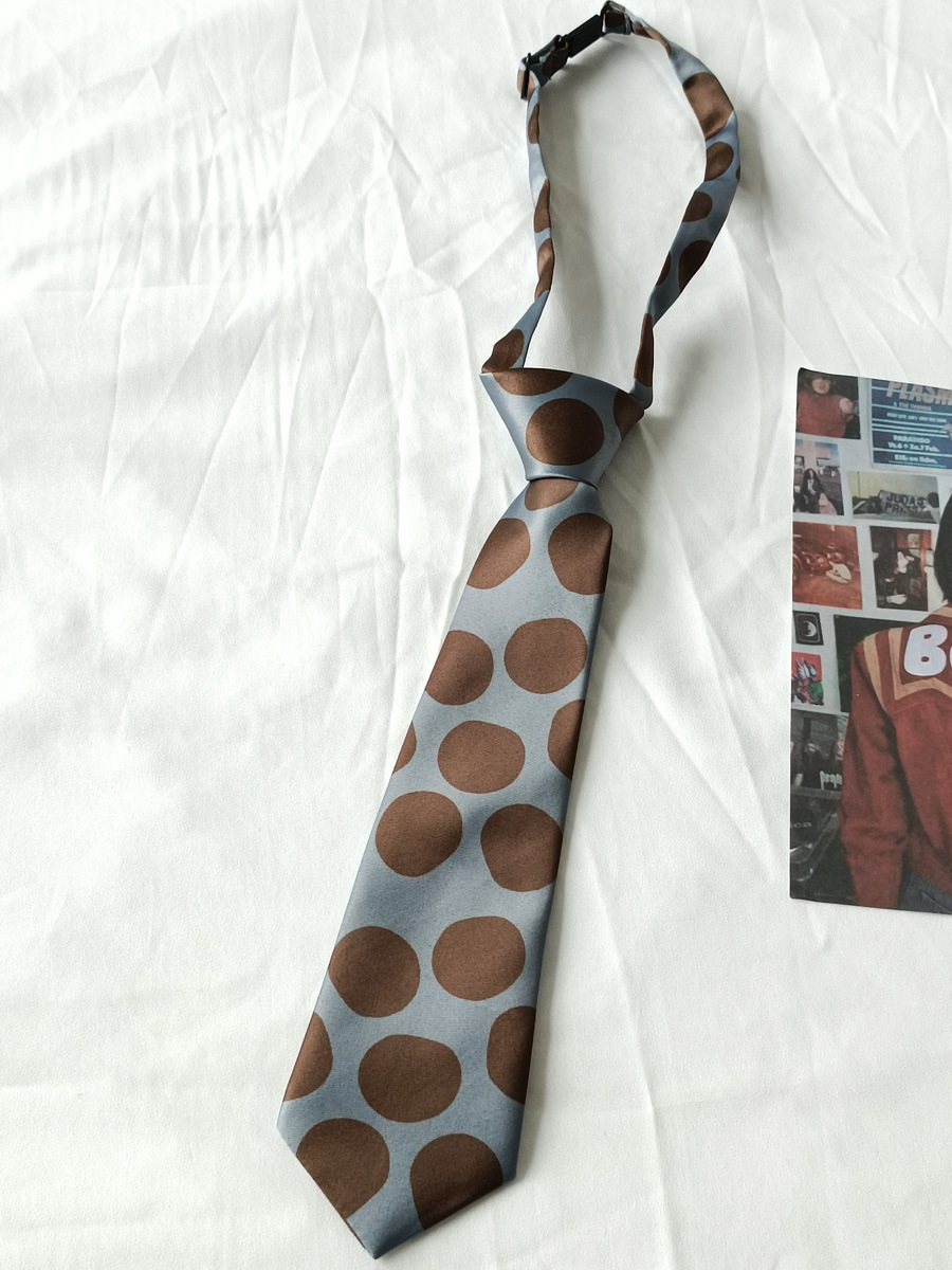 조정 가능한 복고풍 다크 브라운 커피 웨이브 도트 블루 그레이베이스 독특한 유행 히트 프리 짧은 작은 넥타이 학생 장식