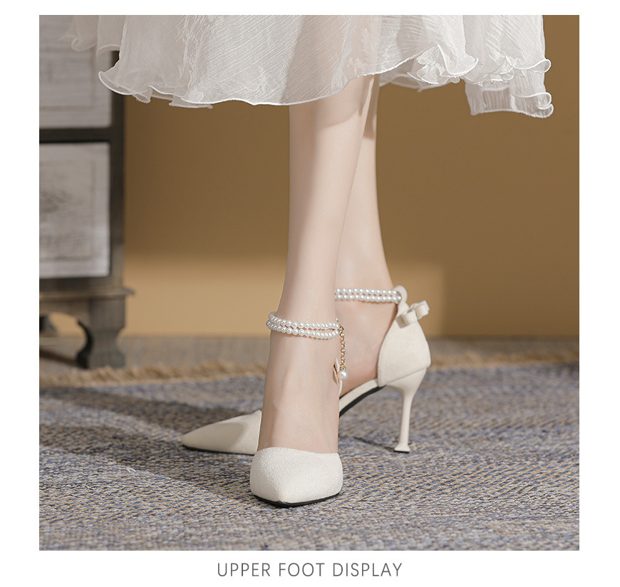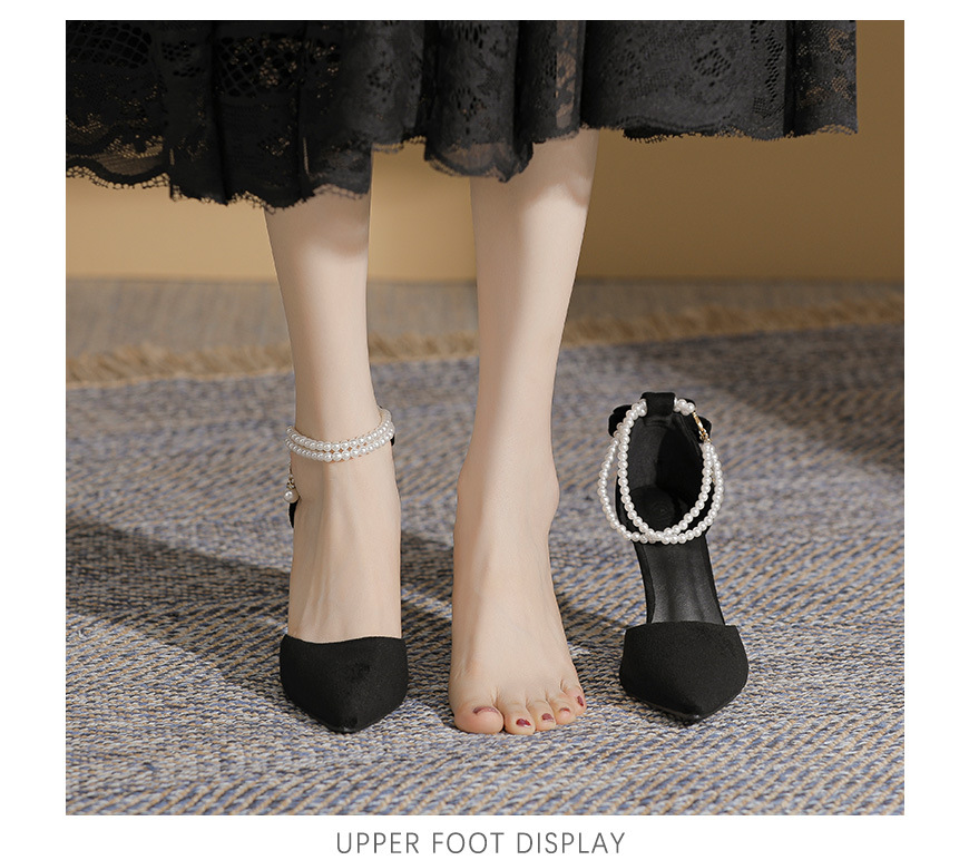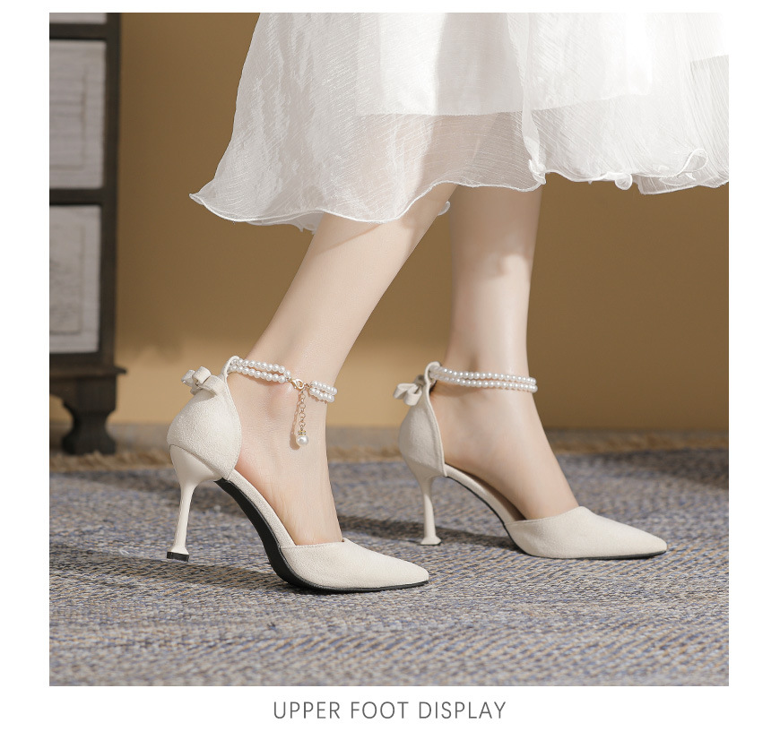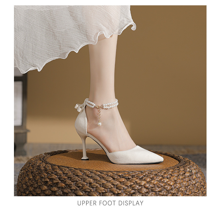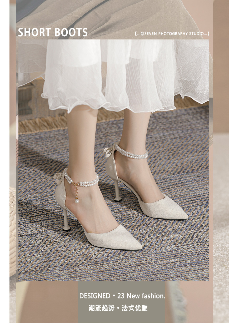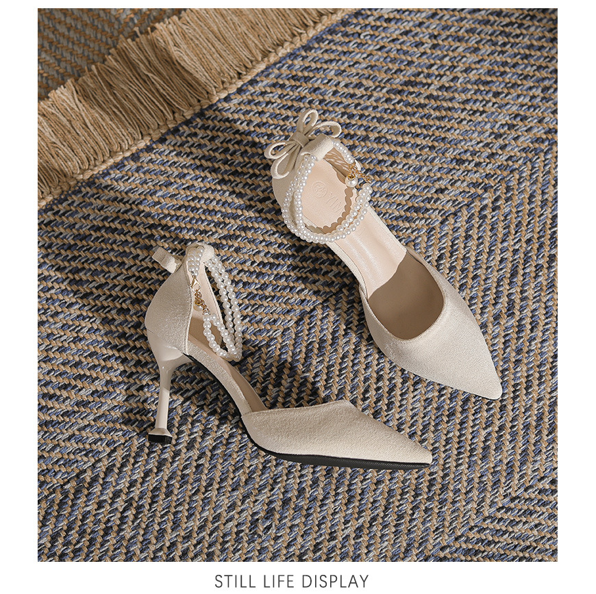 2023 새로운 하이힐 여성용 스틸레토 힐 플러스 사이즈 뾰족한 버클 샌들 여성용 스몰 사이즈 진주 여성 신발 모든 매치 신발스토어 가기