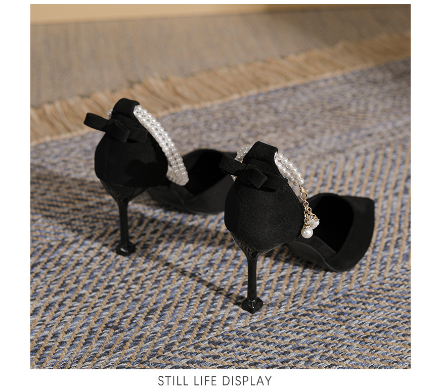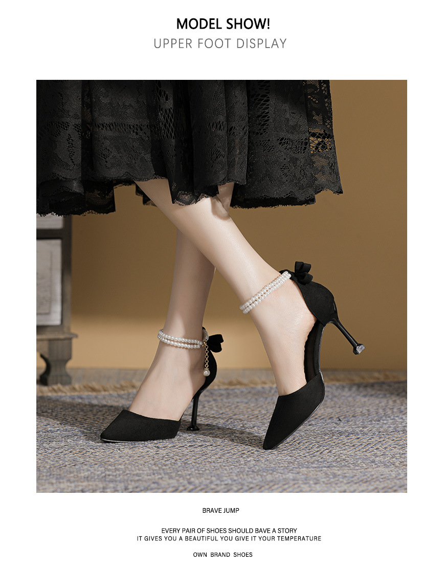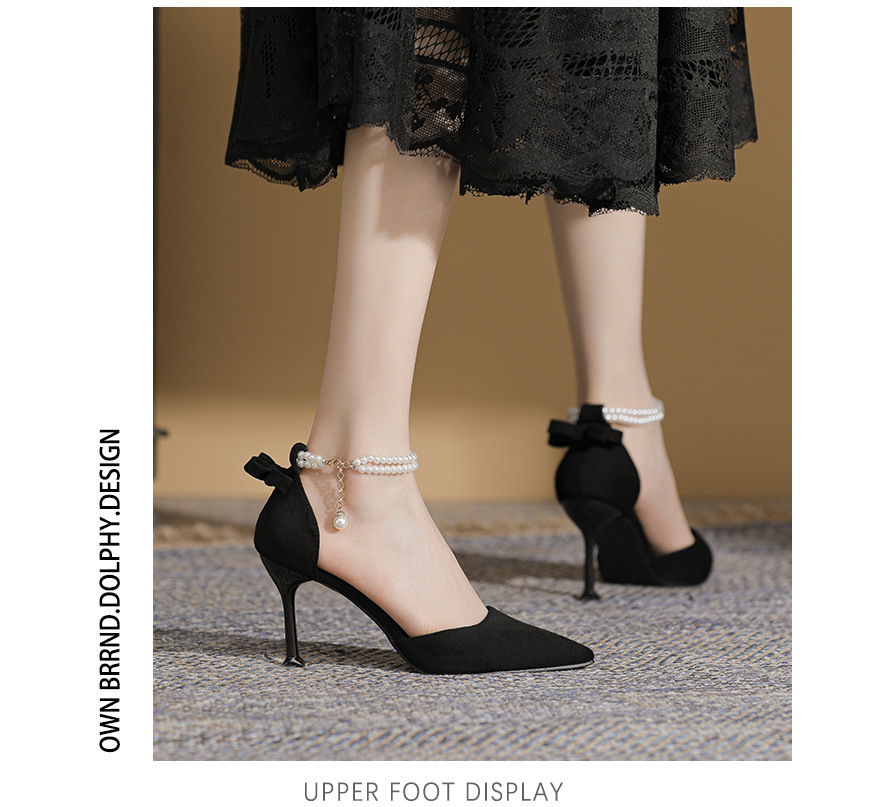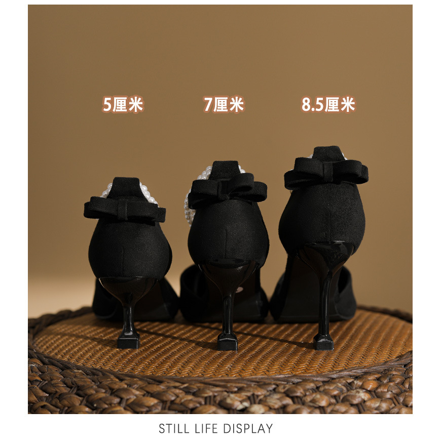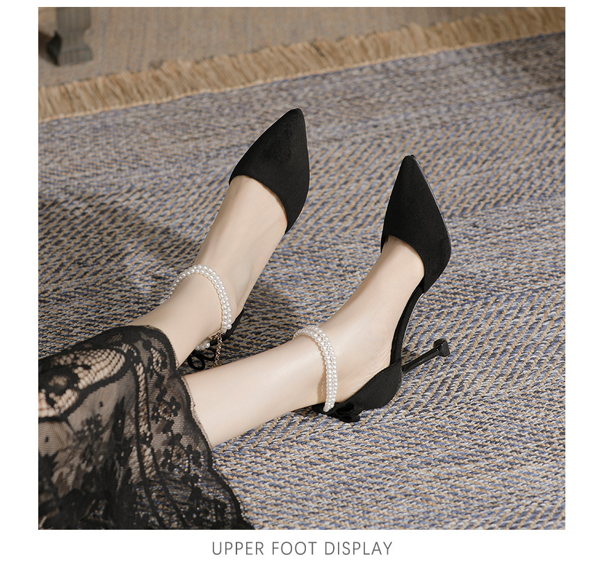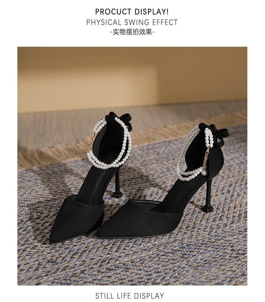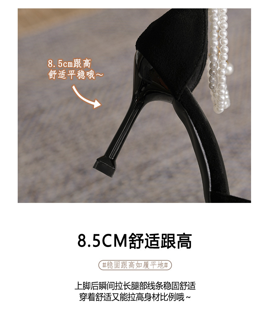 2023 새로운 하이힐 여성용 스틸레토 힐 플러스 사이즈 뾰족한 버클 샌들 여성용 스몰 사이즈 진주 여성 신발 모든 매치 신발스토어 가기
