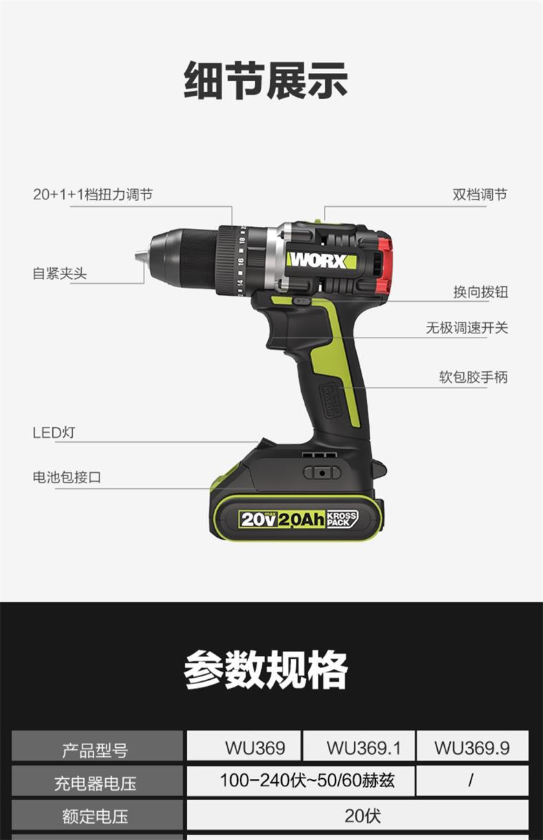 • WU369 임팩트 전기 드릴 6.0Ah 보조 플래시 충전