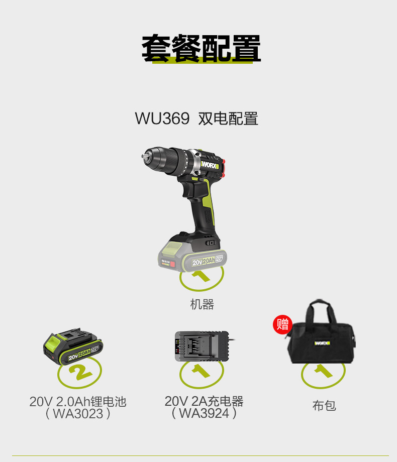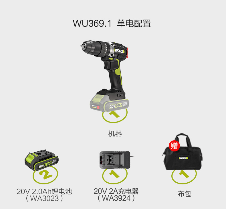 • WU369 임팩트 드릴 2.0Ah 보조 배터리 고속 충전