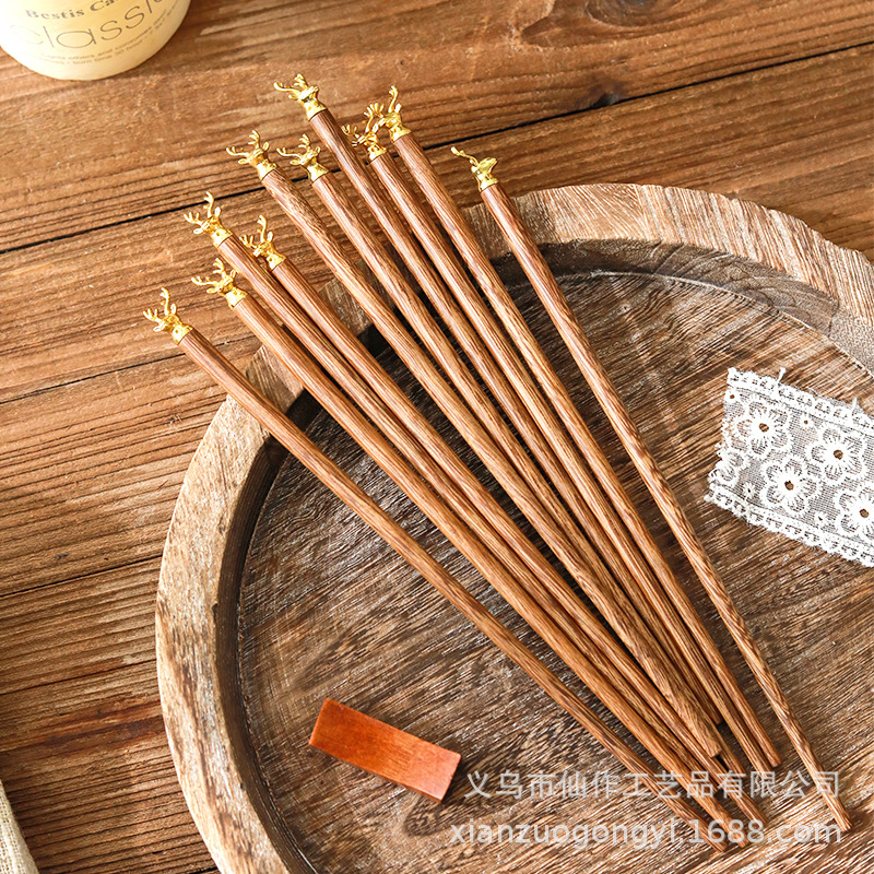 새끼 사슴 고급 단단한 나무 젓가락 가정용 젓가락 젓가락 미끄럼 방지 금형 고온 무변형 호텔 식기스토어 가기