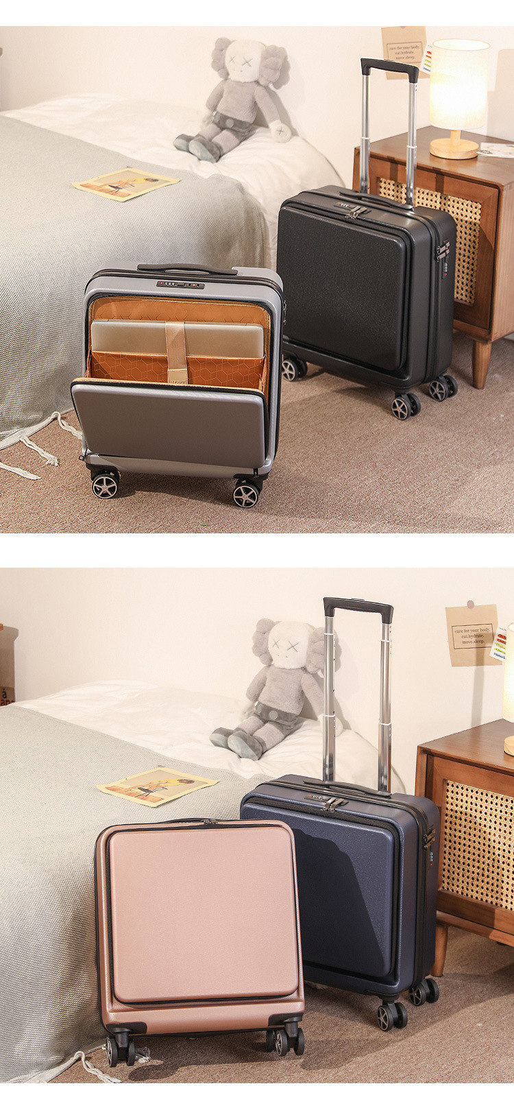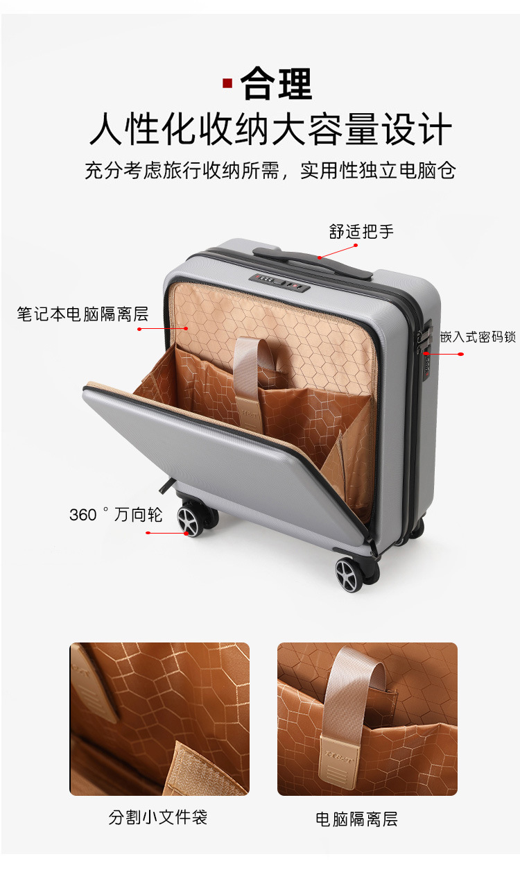 여행 가방 남성용 비즈니스 오픈 수하물 케이스 18 인치 여성용 소형 휴대용 컴퓨터 트롤리 케이스 항공기 탑승 케이스