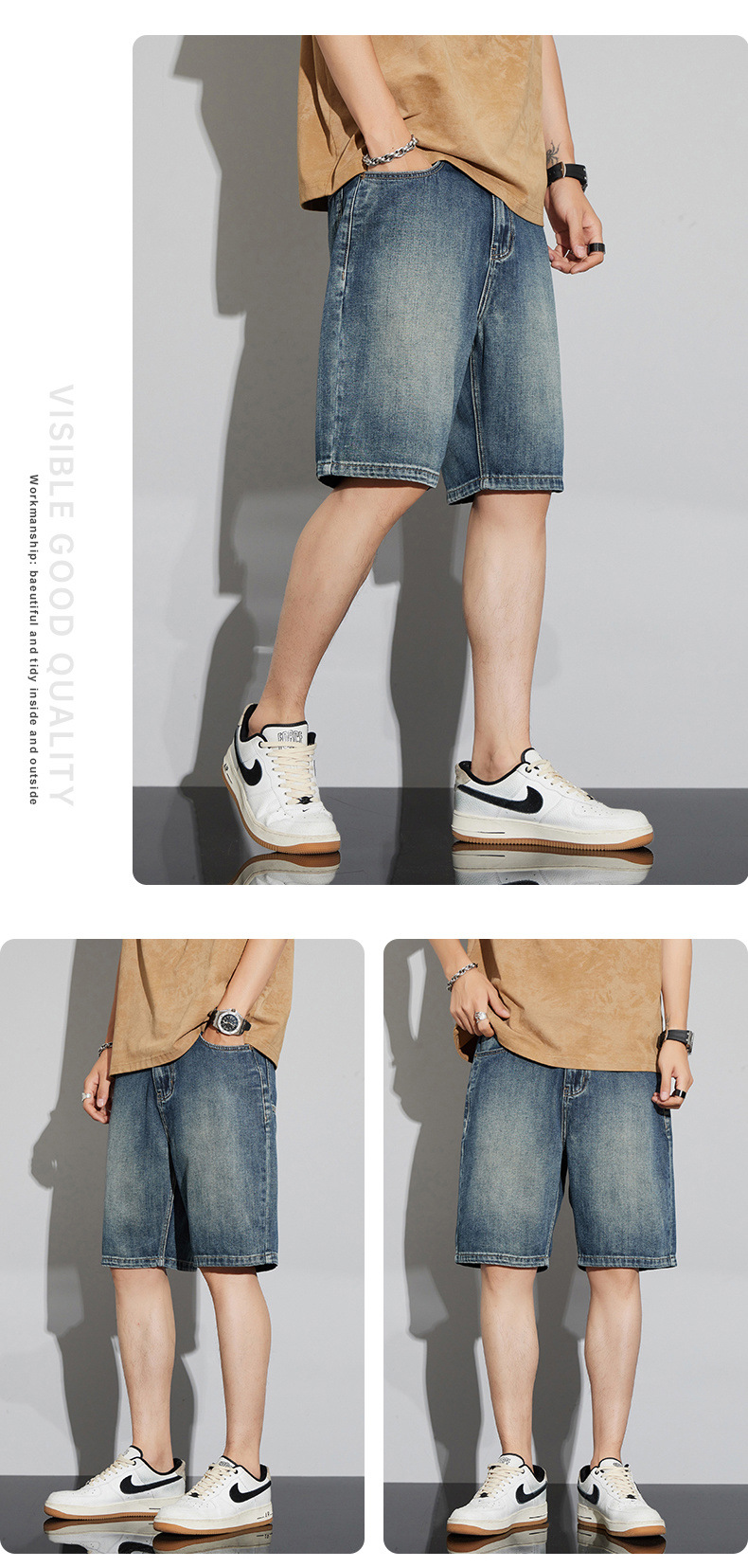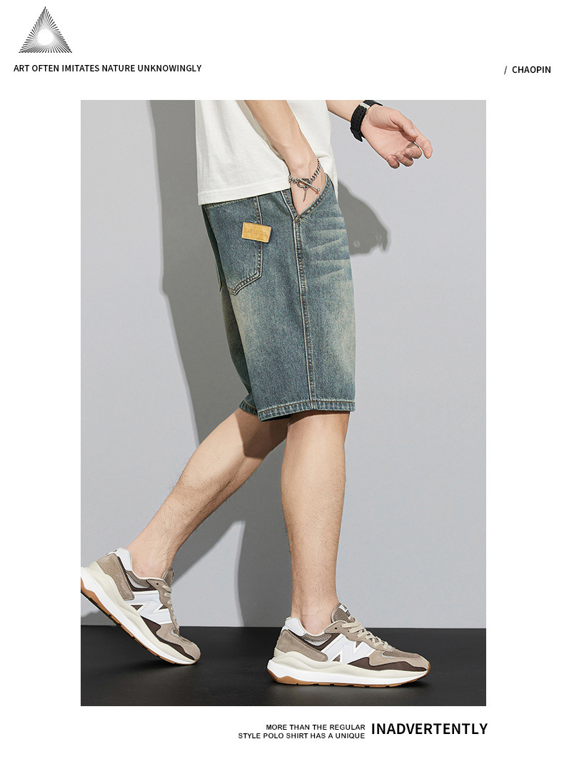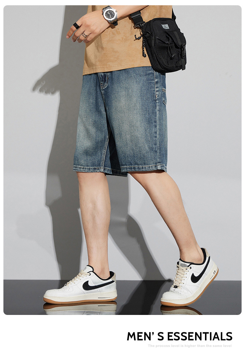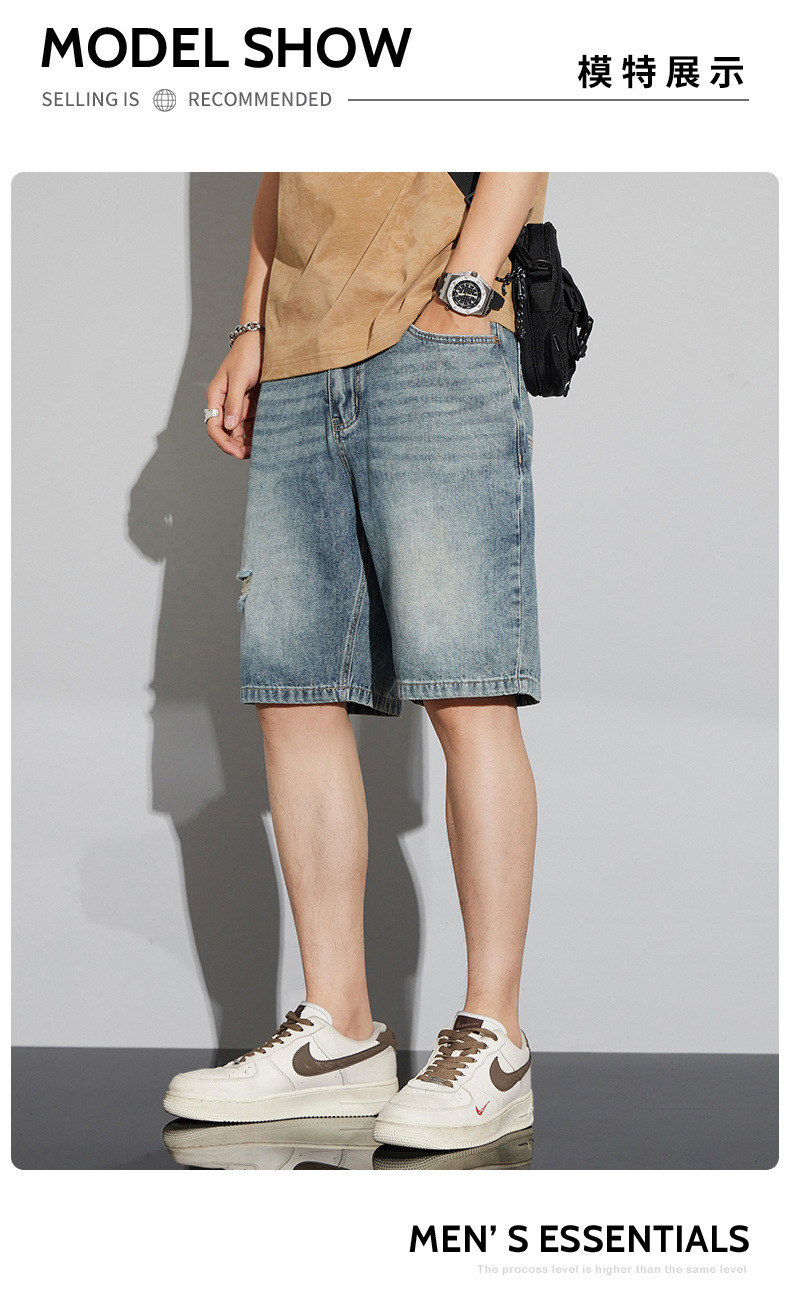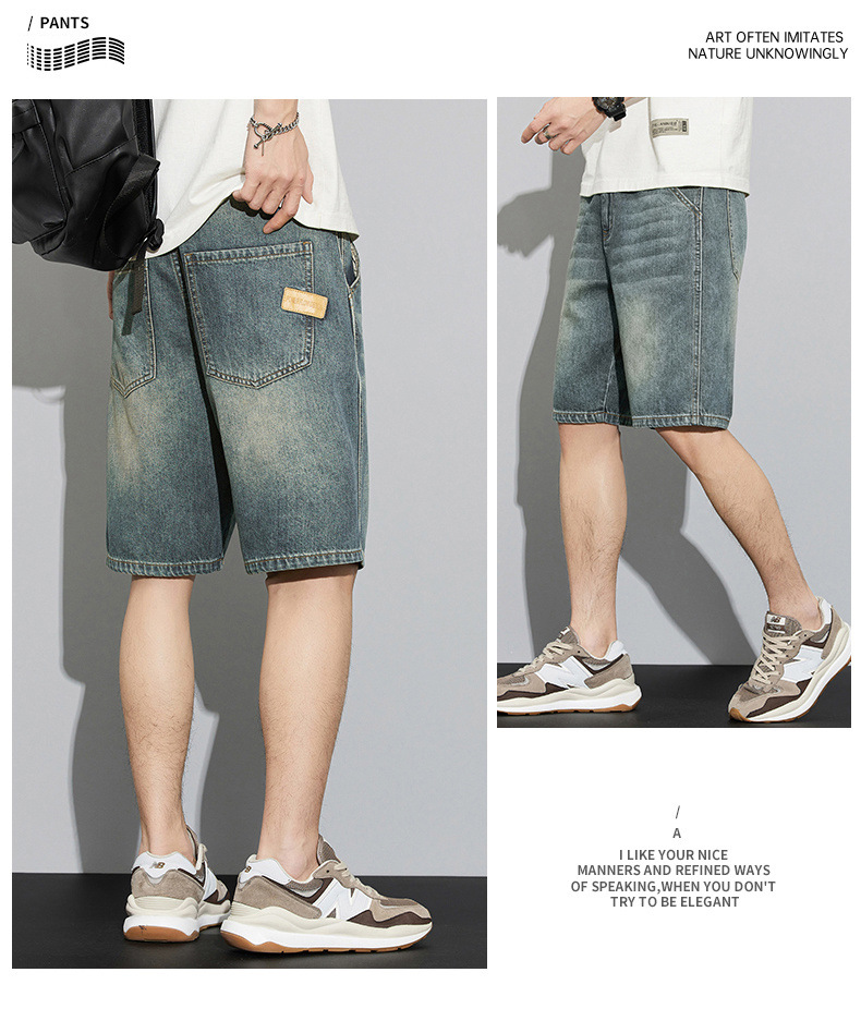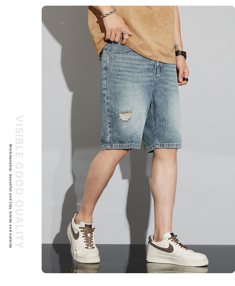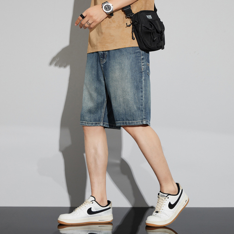 데님 반바지 남성 여름 패션 브랜드 반팔 남성 5 점 바지 남성 랩 의류 남성용 바지스토어 가기