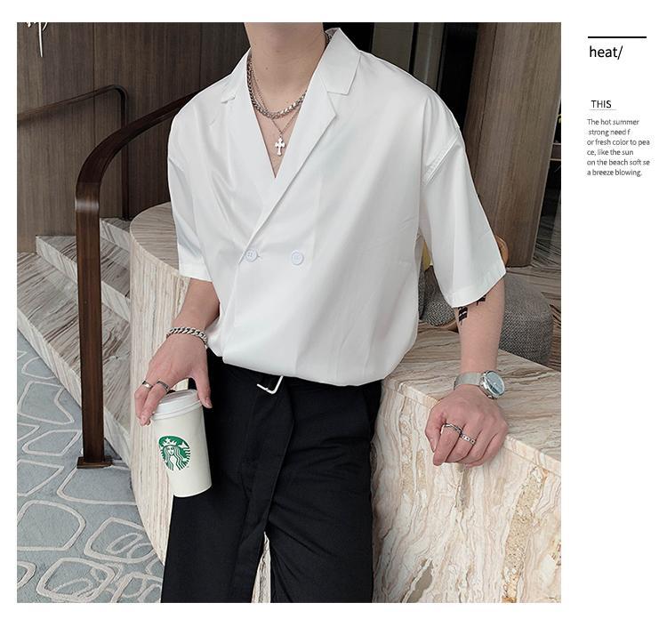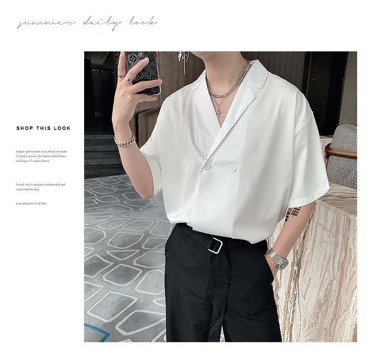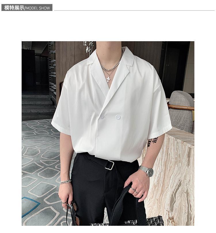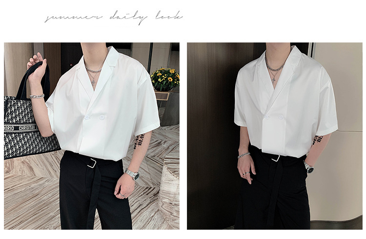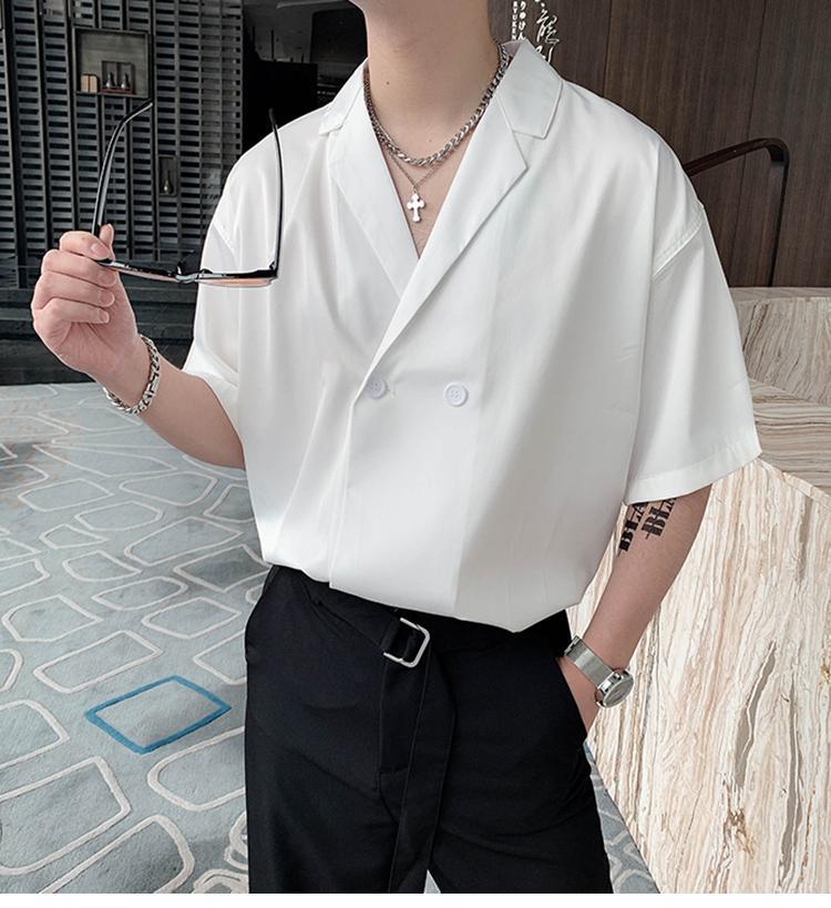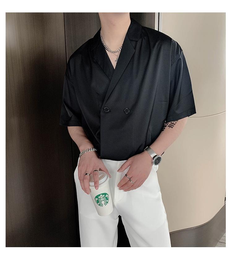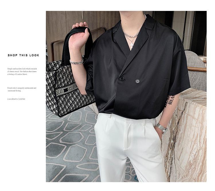여름 틈새 금욕 스타일 잘 생긴 반팔 셔츠 남성 인터넷 연예인 라이트 럭셔리 한국 스타일 드레이프 정장 칼라 셔츠 헤어 스타일리스트